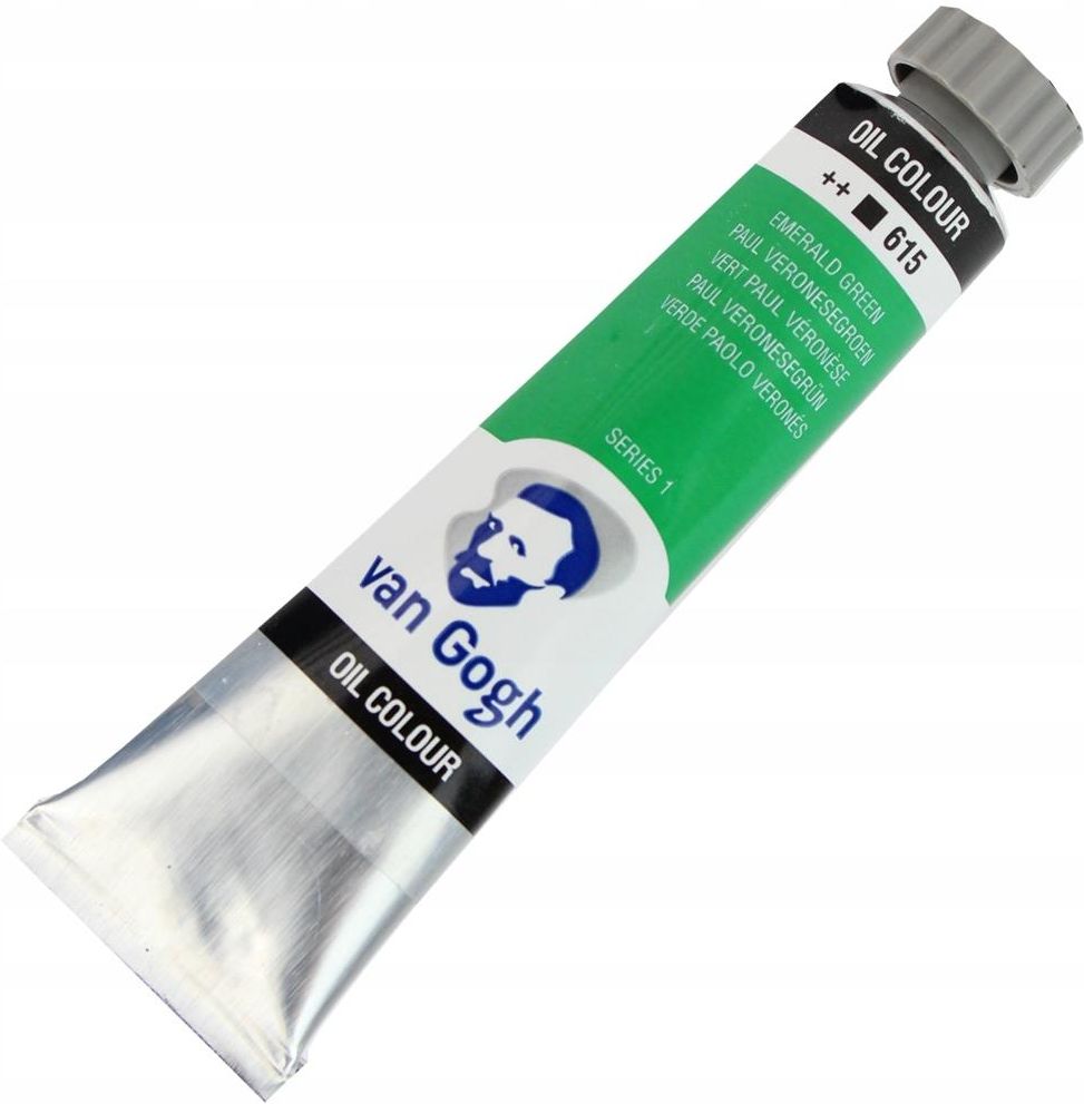 Talens Van Gogh Oil Colour artystyczna farba olejna trwałe i wyraźne kolory wysoka zawartosć pigmentu równomierne rozprowadzenie pędzlem doskonala odporność na światło, dzięki czemu są długotrwałe przeznaczone dla profesjonalistów i początkujących miłośników malarstwa olejnego kolory znakomicie łączą się między sobą, co umożliwia uzyskanie szerokiego spektrum barw i odcieni pojemność tuby 40ml kolor: 615 Emerald Green (seria 1) HTML # 087B78 CMYK # 87, 33, 53, 11 RGB # 8, 123, 120produkt holenderskiej firmy Talens