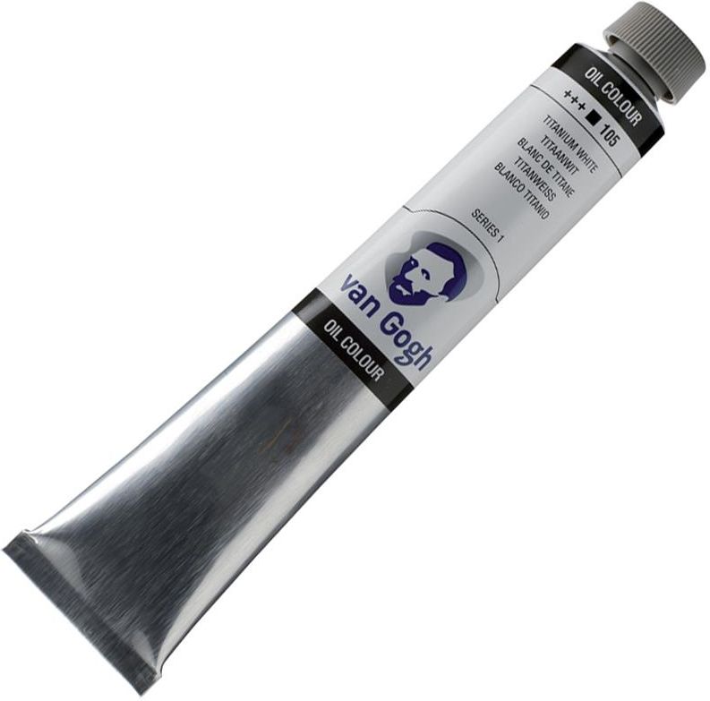 Talens Van Gogh Oil Colour artystyczna farba olejna trwałe i wyraźne kolory wysoka zawartosć pigmentu równomierne rozprowadzenie pędzlem doskonala odporność na światło, dzięki czemu są długotrwałe przeznaczone dla profesjonalistów i początkujących miłośników malarstwa olejnego kolory znakomicie łączą się między sobą, co umożliwia uzyskanie szerokiego spektrum barw i odcieni pojemność tuby 60 ml kolor: titanium white/biel tytanowa 105 (seria 1) Pigment: inorganic; titanium dioxide; TiO2 HTML # EEEBEB CMYK # 0, 1, 1, 0 RGB # 255, 252, 250 produkt holenderskiej firmy Talens