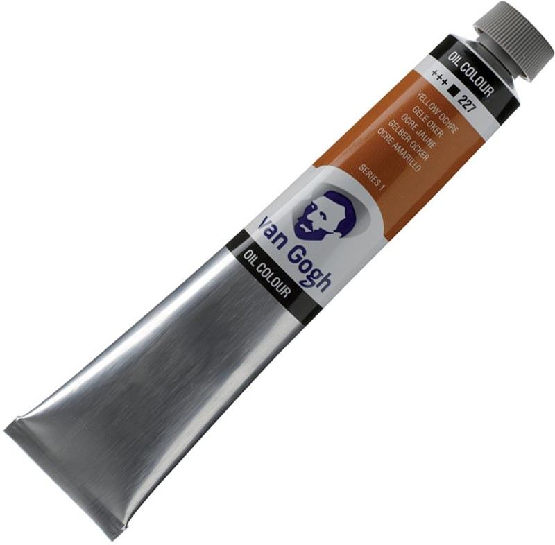 Talens Van Gogh Oil Colour artystyczna farba olejna trwałe i wyraźne kolory wysoka zawartosć pigmentu równomierne rozprowadzenie pędzlem doskonala odporność na światło, dzięki czemu są długotrwałe przeznaczone dla profesjonalistów i początkujących miłośników malarstwa olejnego kolory znakomicie łączą się między sobą, co umożliwia uzyskanie szerokiego spektrum barw i odcieni pojemność tuby 60ml kolor: 227 Yellow Ochre (seria 1) Pigment: inorganic,earth; iron oxide; Fe2O2 lub Fe2O3 • H2O HTML # A76D3F CMYK # 29, 58, 83, 13 RGB # 167, 109, 63 produkt holenderskiej firmy Talens