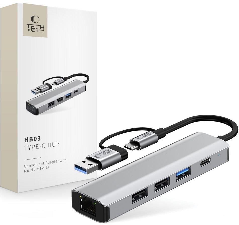 Tech-Protect Hb03 Hub Adapter 5In1 Type-C + USB2.0 USB3.0 Rj45 Space Grey Łódź