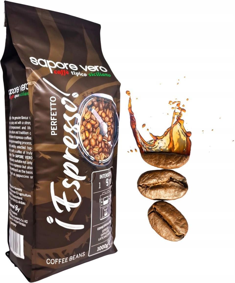 Kawa Ziarnista SAPORE VERO PERFETTO ESPRESSO 1 KG. Sapore Vero Perfetto Espresso to wykwintna kawa ziarnista o doskonale zbalansowanym aromacie — idealna zarówno do ekspresów ciśnieniowych, jak i alternatywnych metod parzenia. . Kluczowe cechy Mieszanka Arabiki i Robusty — umożliwia stworzenie pełnego, intensywnego smaku z wyjątkową strukturą crema Głęboka i ciemna palona — podkreśla nuty ciemnej czekolady, orzecha i karmelu, nadając kawie głębię i wyrazistość Włoskie pochodzenie — kawa produkowana zgodnie z tradycją palenia we Włoszech, co przekłada się na autentyczne espressoowy charakter. Opakowanie 1 kg — szczelna, foliowana torba (często z zaworem dekompresyjnym), która utrzymuje aromat i świeżość przez długi czas. Wszechstronne zastosowanie — doskonała zarówno do espresso, jak i kaw mlecznych: cappuccino, latte czy americano. Dlaczego warto? Tworzy intensywną, aromatyczną podstawę espresso z aksamitną crema. Mieszanka Arabiki i Robusty łączy delikatność z mocą oraz pobudzającym efektem. Kawa z dużym opakowaniem 1 kg to świetna inwestycja dla domowego baristy, biur i małych kawiarni. Termin ważności: 09.2028