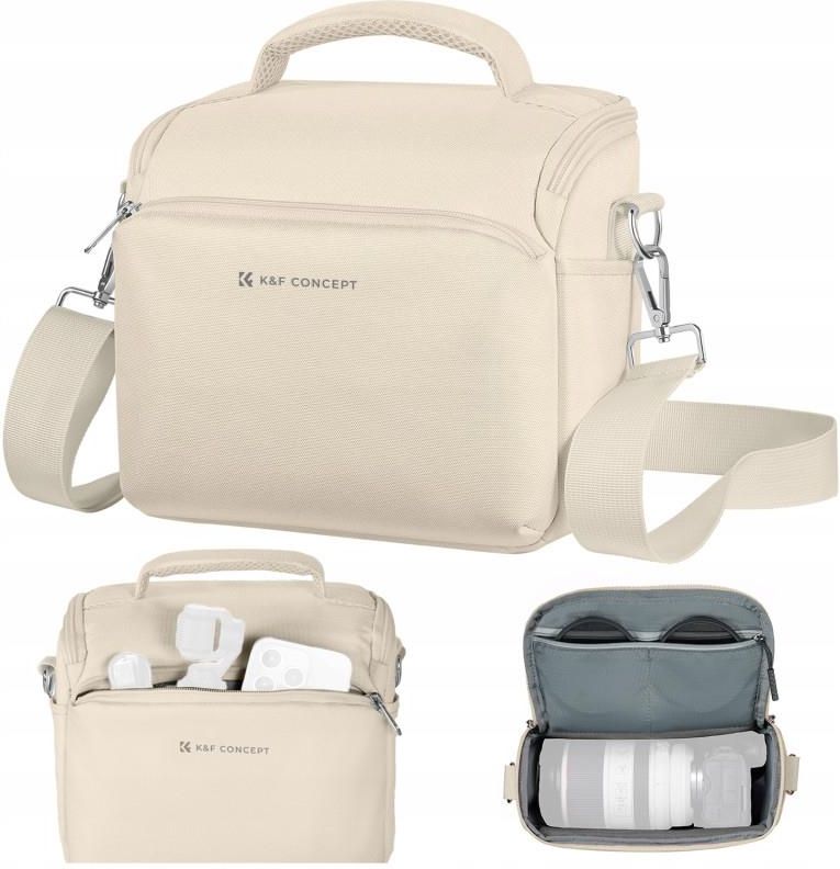 Torba Fotograficzna na Aparat Kamerę Damska Na ramię Stylowa KREMOWA K&F Łódź