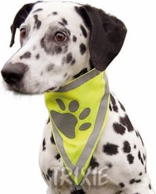 Trixie Bandamka odblaskowa dla psa. Trixie Bandamka odblaskowa to ochronna bandamka odblaskowa dla psów. zapewni Twojemu pupilowi i Tobie bezpieczeństwo na drodze, na ulicy zarówno w nocy, o zmierzchu, o świcie. Jesteście bezpieczniejsi dzięki zwiększonej widoczności, kierujący pojazdami widzą z daleka jaskrawy, żółty kolor oraz odblaskowe pasy. Trixie Bandamka odblaskowa to doskonałe rozwiązanie dla okolic o wzmożonym ruchu ulicznym, ale słabym oświetleniu drogi. Trixie Bandamka odblaskowa to dobre rozwiązanie na spacer w teren leśny, gdzie pies biegający luzem może zostać np: postrzelony przez myśliwego lub wzięty za bezpańskiego. Można w nią ubrać psa: domowego, obronnego, ratunkowego. zalety produktu: bandamka posiada odblaskowe paski, oraz jaskrawy kolor, można ją prać w temperaturze do 30 stopni, łatwe zakładanie zapewnia mocowanie na rzepy, doskonale widoczna w każdych warunkach pogodowych, doskonale widoczna w dzień i w nocy. Nadaje się dla wszystkich psów bardzo dużych ras. Rozmiar: XS-S, 30 × 13 cm/1,5 cm.