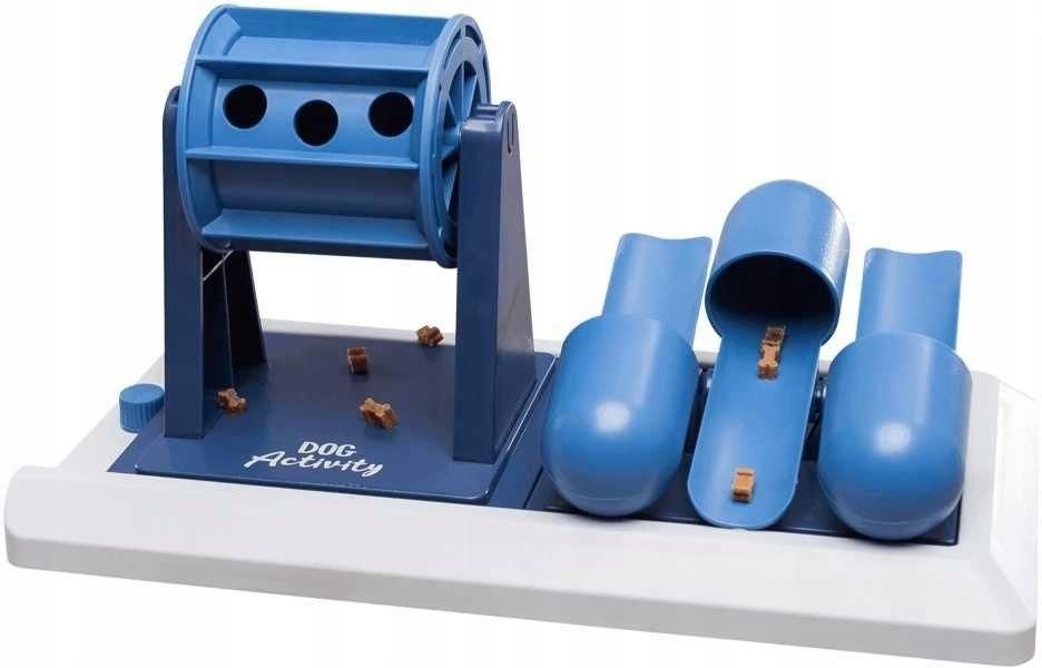 Zabawka logiczna dla psa Trixie Dog Activity Poker Box Vario wypowiada wojnę nudzie! To kreatywna zabawka dla psa, która zapewnia urozmaiconą aktywność intelektualną Twojemu czworonożnemu przyjacielowi. Dog Activity Poker Box Vario firmy Trixie to rodzaj gry planszowej z kilkoma huśtawkami i elementami obrotowymi, które można ułożyć w różnych konfiguracjach. Zabawkę dla psa można wypełnić smakołykami lub karmą suchą. Pies musi zdobyć przekąski przesuwając poszczególne elementy. Taki zabieg z pewnością spowolni przyjmowanie jedzenia. Akcesorium posiada znak ochrony zwierząt, dzięki czemu możesz bez obaw bawić się z psem. Trixie Dog Activity Poker Box Vario, logiczna zabawka dla psa w skrócie: Zabawka na inteligencję dla psa. Plansza z kołyszącymi i obracającymi się elementami zapewni psu intelektualną rozrywkę. Do podawania przysmaków lub karmy suchej: aby zdobyć jedzenie pies musi się najpierw trochę napracować, taki system może spowolnić przyjmowanie jedzenia. Bębenek otwiera się z jednej strony: napełnienie go przekąskami nie będzie stanowić żadnego problemu. Różnorodność: ruchome elementy można przymocować do planszy w różnych konfiguracjach. Interaktywność: gra wzmocni więzi między zwierzęciem a opiekunem. Czyszczenie: można myć w zmywarce. Dołączony plan treningowy z różnymi poradami i sprytnymi trikami. Odznaczona znakiem gwarantującym ochronę zwierząt: produkt odpowiada normom austriackiej ustawy o dobrostanie zwierząt. Kolor: niebieski / szary. Materiał: tworzywo sztuczne. Rozmiar dł. x szer. x wys.: 32 x 17 x 17 cm. Uwaga! Zawsze pilnuj swojego pupila podczas zabawy, bez względu na rodzaj używanej zabawki. Regularnie sprawdzaj jej stan i wymień ją na nową, jeżeli zauważysz uszkodzenia lub brakujące elementy, ponieważ mogą one doprowadzić do zranienia zwierzęcia.