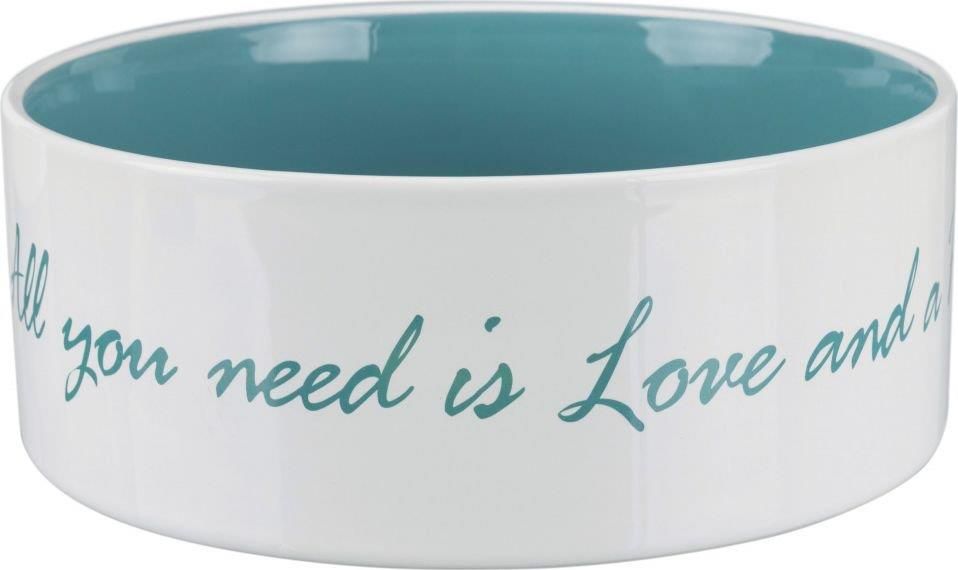 TRIXIE PET'S HOME UROCZA MISKA CERAMICZNA DLA PSA KOTA NA KARMĘ WODĘ POKARM 1,4L/20CM KREMOWA NIEBIESKA - 1szt Trixie Pet's Home kremow-niebieska miska ceramiczna dla psa i kota. CECHY pojemność: 1,4l średnica: 20cm materiał: ceramika kolor: kremowy, niebieski z uroczym napisem "All you need is …