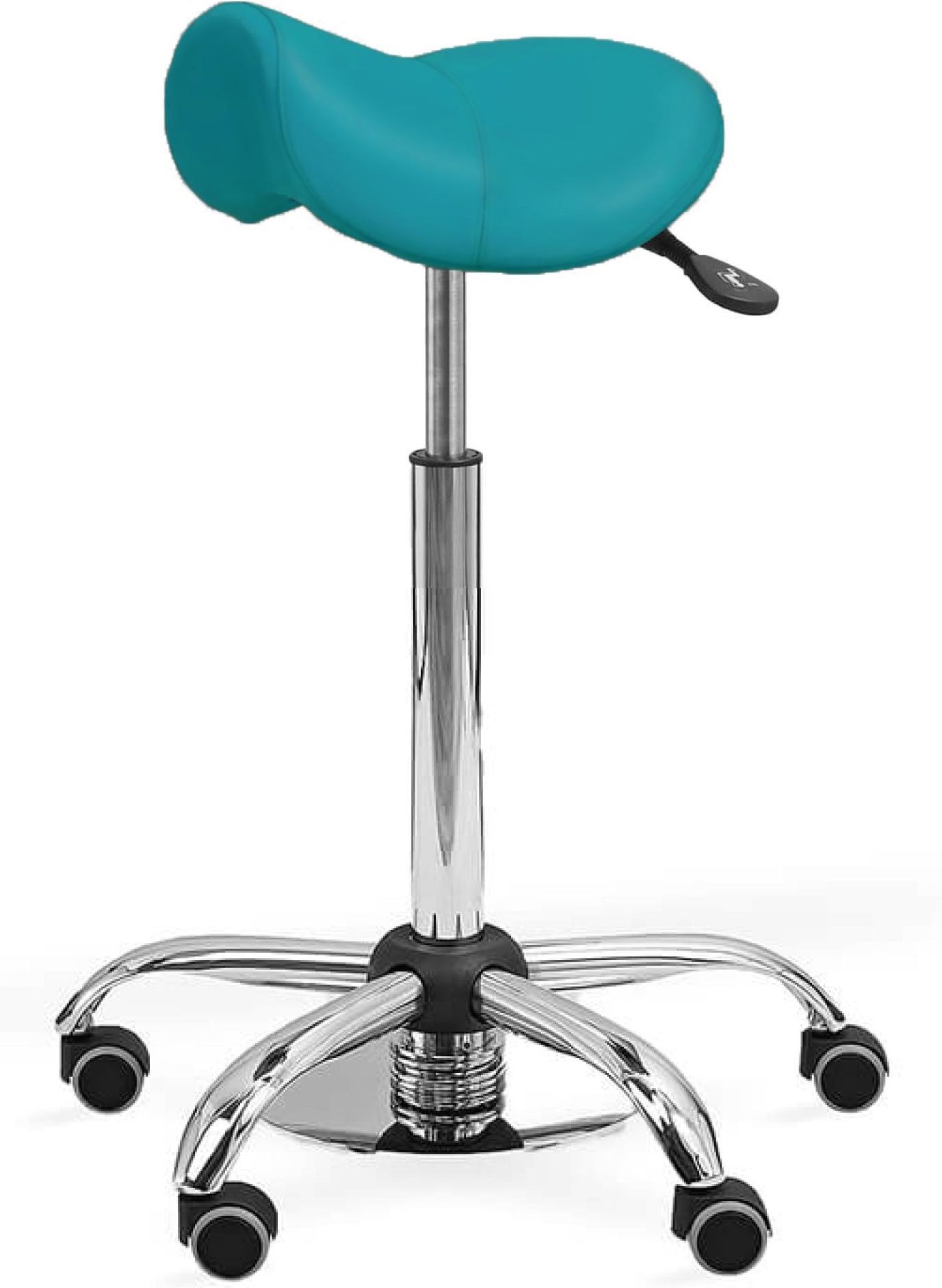 Taboret medyczny ERGO STS z podnóżkiem Odpowiednio wyprofilowane siedzisko, kształtem przypominające siodło jest odpowiednie dla mężczyzn oraz kobiet. Kształt podstawy wraz z pierścieniem pozwala na przysunięcie się bardzo blisko pacjenta lub w pobliże innych taboretów. Mobilny dzięki zamontowanym kółkom. Taborety z linii ERGO siedzisko siodło poliuretanowe ( ERGO SP ), siedzisko siodło poliuretanowe + mechanizm synchronicznej regulacji pochylenia siedziska ( ERGO SPS ), siedzisko siodło tapicerowane ( ERGO ST ), siedzisko siodło tapicerowane + mechanizm synchronicznej regulacji pochylenia siedziska ( ERGO STS ). W ofercie przedstawione jest zdjęcie poglądowe bez podnóżka. WYMIARY Model ERGO STS Min. wysokość: 590mm Max. wysokość: 780mm Średnica podstawy: 600mm Skok: 250mm