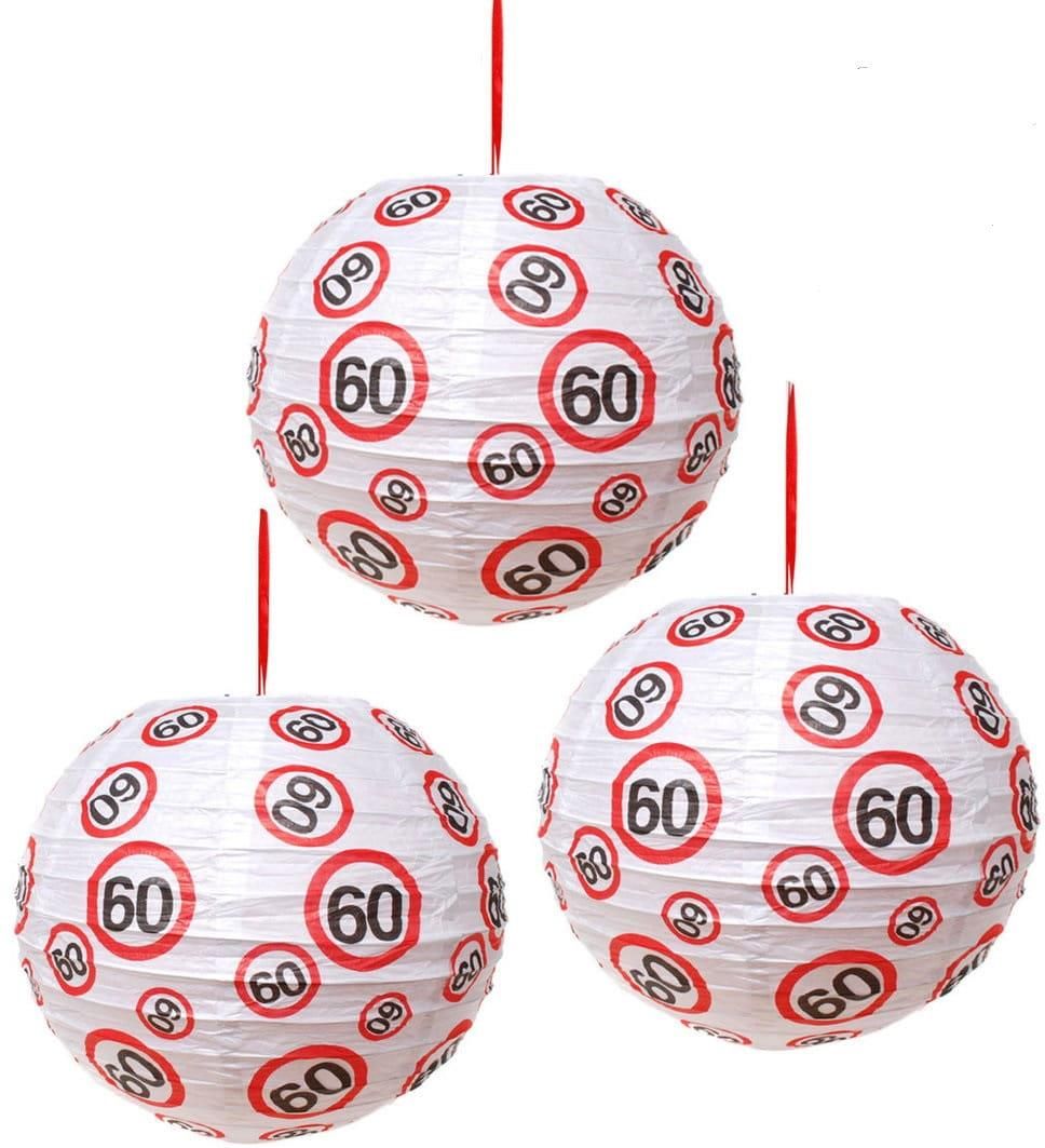 Lampion papierowy stworzy doskonałą dekorację na 60 urodziny wnętrza, imprezy na wolnym powietrzu i pod namiotem. Ogrodowy abażur wykonany z papieru w białym kolorze z nadrukiem znaków drogowych z cyfrą 60.Metalowe zaczepy przymocowane w górnej części ozdoby zapewnia łatwe oraz komfortowe zawieszenie w dowolnym miejscu. Łatwość zawieszenia oraz lekkość sprawi, że lampion możesz użyć gdzie tylko chcesz. Średnica lampionu: 25,5 cm. Opakowanie zawiera 3 szt.