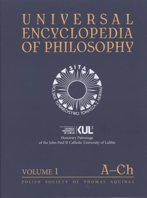 Ukazał się pierwszy z projektowanych dziewięciu tom Universal Encyclopedia of Philosophy obejmujący hasła na litery ABCh. Tom stanowi przekład polskiej dziesięciotomowej Powszechnej Encyklopedii Filozofii rozpoczęły się w 1998 r., a kolejne dziesięć tomów ukazywało się w latach 2000-2009. Jest to pierwsza w dziejach nauki polskiej encyklopedia filozofii i piąte tego typu wydawnictwo na świecie. Inicjatorem całego przedsięwzięcia oraz przewodniczącym Komitetu Naukowego był o. prof. Mieczysław Albert Krąpiec OP, zaś redaktorem naczelnym całości był ks. prof. Andrzej Maryniarczyk SDB. Celem Powszechnej Encyklopedii Filozofii jest dać rzetelne podstawy dla pełnego rozwoju klasycznie rozumianej kultury, a więc: nauki, etyki, sztuki (techniki) oraz religii. Encyklopedia uwzględnia dziedzictwo filozofii klasycznej jako podstawę tożsamości kultury europejskiej. Ukazując się w Lublinie mieście położonym na styku różnych cywilizacji, religii i kultur daje obraz nie tylko filozofii europejskiej, ale i pozaeuropejskiej. Powszechność Encyklopedii wyraża się w liście haseł obejmującej dorobek myśli filozoficznej dalekiego Wschodu (Indii, Korei, Chin i Japonii), bliskiego Wschodu (arabskiej i żydowskiej), Ameryki środkowej (Inków i Majów) i myśli afrykańskiej (etnofilozofia). W Encyklopedii znajdują się także informacje na temat filozofów z krajów bałkańskich (np. z Serbii, Chorwacji, Bośni), a także z Rumunii, Bułgarii czy Słowenii i uprawianej przez nich filozofii. W Encyklopedii został uwzględniony dorobek polskiej myśli filozoficznej i wkład polskich myślicieli w rozwój nauki, w szczególności filozofii i humanistyki. Szeroka panorama ukazywanej filozofii stawia Powszechną Encyklopedię Filozofii na czołowym miejscu w polskiej i światowej literaturze filozoficznej. EAN: 9788365792358