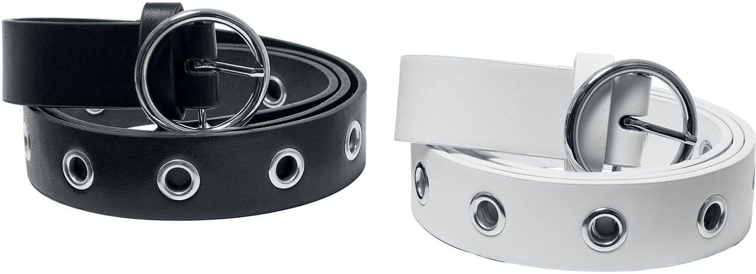Urban Classics - Synthetic Leather Eyelet Belt 2-Pack - Pas - czarny, biały Łódź