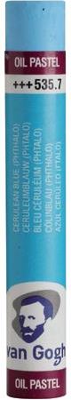 Pastela olejna Van Gogh Talens 535.7 Cerulean blue Pastele olejne Van Gogh wykonane są z najwyższej jakości pigmentów, olejów mineralnych i spoiwa woskowego co pozwala na miękkie, gładkie i bezpyłowe rysowanie przy zachowaniu intensywnych kolorów. Pastele z tej serii łatwo łączą się ze sobą umożliwiając nakładanie na siebie kolejnych warstw. Dla uzyskania efektu farb olejnych, pastele można używać na mokro z terpentyną lub roztworem mineralnym. Nadają się na podłoża różnego rodzaju. Cała gama składa się z 60 kolorów dostępnych również w zestawie.