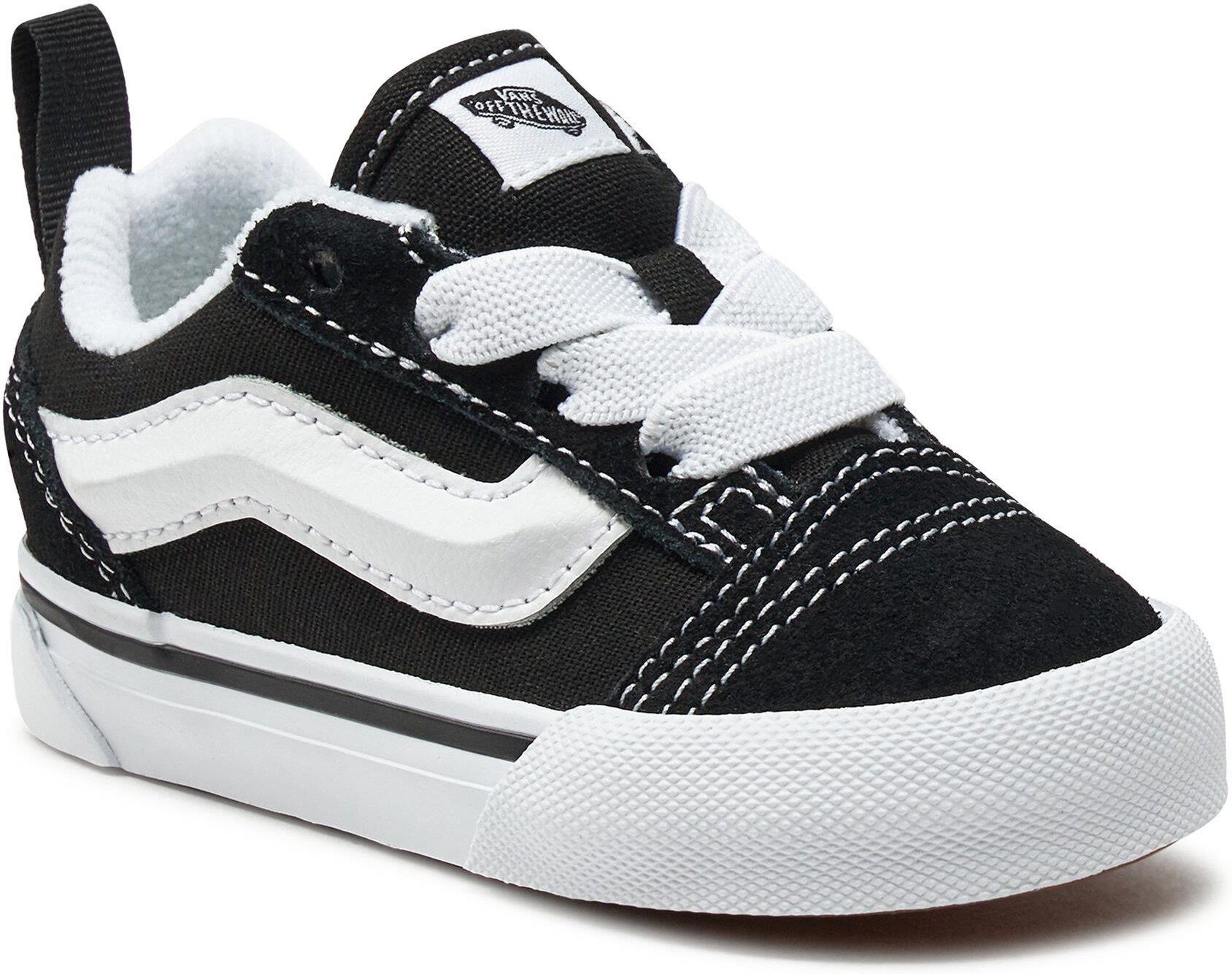 Pikowany design inspirowany latami 90-tymi, inspirowany przeszłością, ale stworzony na dziś. Wyposażone w wyściełany język, trójwymiarowy pasek boczny i masywne, duże sznurowadła, buty dziecięce Knu Skool są współczesną reinterpretacją klasycznego modelu z lat 90. Dzięki prowokacyjnej sylwetce i wielu uderzającym detalom, ten projekt na nowo odkrywa oryginalny model Old School, łącząc niektóre z najbardziej charakterystycznych cech tego kultowego modelu z przeszłości z aktualnymi trendami. - Wznowienie modelu low-top z lat 90. - Trwała cholewka z zamszu i płótna. - Metaliczne detale. - Wyściełany kołnierz i język. - Formowany w 3D pasek boczny Sidestripe™. - Szlufki na pięcie ułatwiające zakładanie i zdejmowanie. - Charakterystyczna gumowa podeszwa waflowa.. Ref.: VN000D0K6BT1, Materiał zewnętrzny: Skóra, Kolor: Czarny, Wysokość obcasa: Mapa, Zamknięcie: Smycze, Styl: Zwykły
