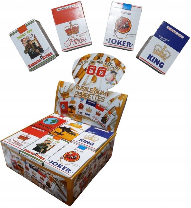 Gumy balonowe Papierosy Paczki 18szt CO WYRÓŻNIA NASZ PRODUKT REALISTYCZNE OPAKOWANIA⭐ - Kartoniki wykonane z dbałością o szczegóły, idealnie imitujące prawdziwe paczki papierosów dla autentycznej zabawy. INTERAKTYWNY EFEKT DYMU⭐ - Każdy gumowy papieros zawiera specjalny proszek, który po …