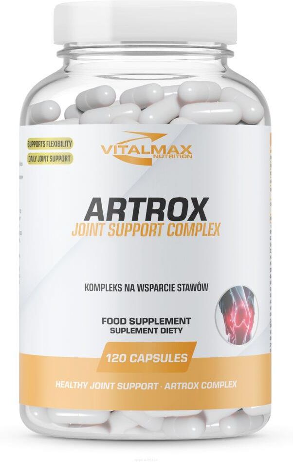 Jest kompleksowym preparatem chroniącym i regenerującym ścięgna i stawy. Zawiera glukozaminę, chondroitynę i msm , czyli najważniejsze substancje stosowane w nowoczesnej profilaktyce urazowej. Wszystkie składniki VITALMAX ARTROX zostały skomponowane w idealnych proporcjach, co powoduje, że jest on przeznaczony zarówno dla osób w okresie rekonwalescencji jak i do działania profilaktycznego, poprawia ruchomość i elastyczność stawów, regeneruje je, chroni, działa przeciwzapalnie i przeciwbólowo a także zapobiega odwapnianiu kości. Jest także wskazany jako suplement wspomagający w chorobach zwyrodnieniowych stawów a także w przypadkach leczenia zmian wynikających z przeciążenia fizycznego. VITALMAX ARTROX TESTOWANO LABORATORYJNIE POD WZGLęDEM CZYSTOŚCI SKłADU Atrybuty: Zawartość opakowania: 120 kapsułek Skład: w 4 kapsułkach Siarczan glukozaminy (mg): 1596 Siarczan chondroityny (mg): 1384 MSM (metylosulfonylometan) (mg): 372