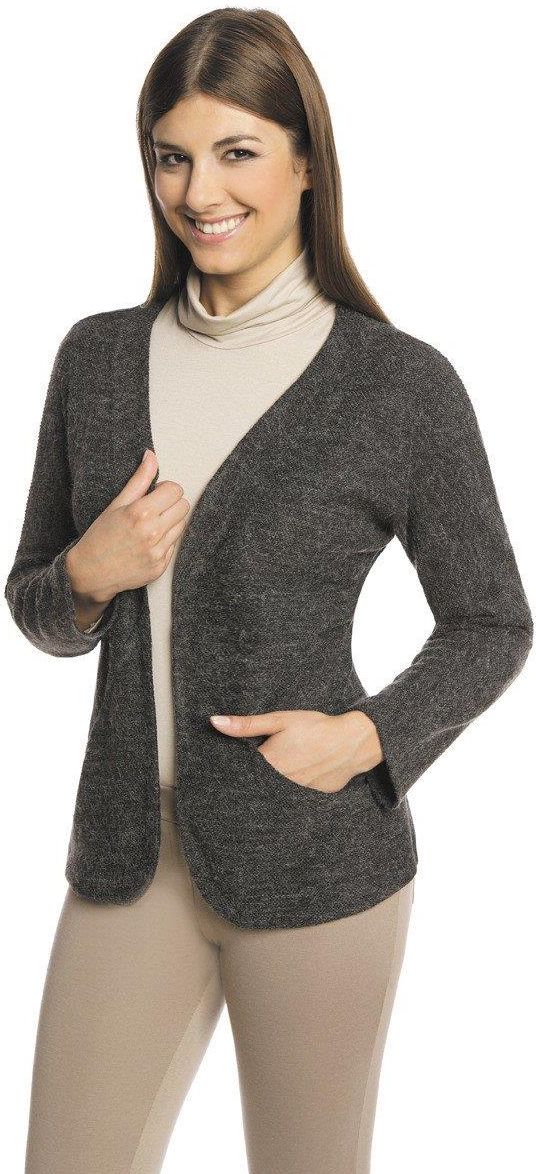 Luźne wdzianko. Rękaw długi typu kimono. Na przodzie pomysłowe cięcia, w których znajdują się kieszenie. Bez zapięcia. Uszyte ze sweterkowej dzianiny, o bardzo ciekawej strukturze z widocznymi supełkami. Ciekawe uzupełnienie wielu zestawów ubrań na co dzień. Doskonale komponuje się z jeansami lub …