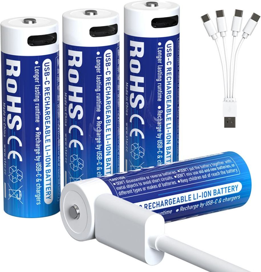 Akumulator Xtar R6 / AA 1,5V Li-ion 3000mAh z zabezpieczeniem z portem USB-C - 4 sztuki napięcie nominalne: 1,5V pojemność: 3000mAh port ładowania: USB-C zabezpieczony przed: rozładowaniem, przeładowaniem, przeciążeniem, zwarciem ilość cykli ładowania i rozładowania: ponad 1200cykli Akumulator XTAR …