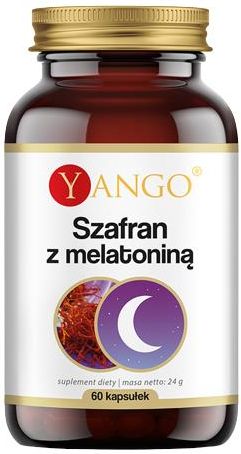 Preparat łączy w sobie relaksujące właściwości szafranu z melatoniną, znaną także jako „hormon snu”. Szafran wspiera odprężenie, a także równowagę emocjonalną i nastrój. Melatonina reguluje rytm dobowy snu i czuwania, a jej większa ilość w organizmie przynosi efekt nasenny. Składniki: Substancja wypełniająca: celuloza mikrokrystaliczna, ekstrakt ze znamion szafranu (Crocus sativus) standaryzowany na zawartość min. 2% krocyny oraz 1% safranalu, melatonina. Skład kapsułki: celuloza roślinna (wegetariańskie). Składniki na porcję(1 kapsułka) Znamiona szafranu – ekstrakt 30 000 µg, w krocyna (2%) 600 µg, w tym safranal (1%) 300 µg, Melatonina 1mg. Masa netto: 60 kapsułek. Właściwości: Melatonina jest neurohormonem wytwarzanym w nocy przez szyszynkę w mózgu. Przygotowuje ona organizm do snu, przez co czasami nazywana jest „hormonem snu”. Suplementacja melatoniną jest więc często stosowana jako pomoc w zasypianiu i łagodzeniu subiektywnego odczucia zespołu nagłej zmiany strefy czasowej, tzw. „jet-lag”. Melatonina nie tylko pomaga nam zasnąć, ale wpływa też na jakość i czas snu. Szafran wytwarzany jest z krokusa szafranowego - fioletowego kwiatu, który kwitnie jesienią i może rosnąć niemal na całym świecie. Pomimo jednak, że rośliny te podlegają adaptacji geograficznej, ich wykorzystanie dla pozyskania szafranu wymaga wiele ostrożności i przygotowań. Kwiaty zawierające przyprawę, kwitną tylko przez 1-3 tygodni w roku i muszą być zbierane ręcznie, a na 1 gram szafranu składa się aż 150 kwiatów. Składniki aktywne szafranu szeroko wykorzystywane są w preparatach poprawiających równowagę emocjonalną i nastrój. Zalecane dzienne spożycie: 1 kapsułka raz dziennie. Przeciwwskazania: Nadwrażliwość na którykolwiek ze składników preparatu. W okresie ciąży i karmienia piersią przed zastosowaniem należy skonsultować się z lekarzem lub farmaceutą. Przechowywanie: Przechowywać w sposób niedostępny dla małych dzieci. Ważne informacje: Nie należy przekraczać zalecanej porcji do spożycia w ciągu dnia. Suplement diety nie może być stosowany jako substytut (zamiennik) zróżnicowanej diety ani aktywnego trybu życia. Utrzymanie prawidłowego stanu zdrowia wymaga zrównoważonego i zróżnicowanego odżywiania i prowadzenia zdrowego trybu życia. Istnieje wiele czynników ryzyka choroby. Zmiana jednego z tych czynników ryzyka może wywierać korzystny wpływ lub nie wywierać go. Producent: YANGO Sp. z o.o. ul. Granitowa 3/14 02-681 Warszawa