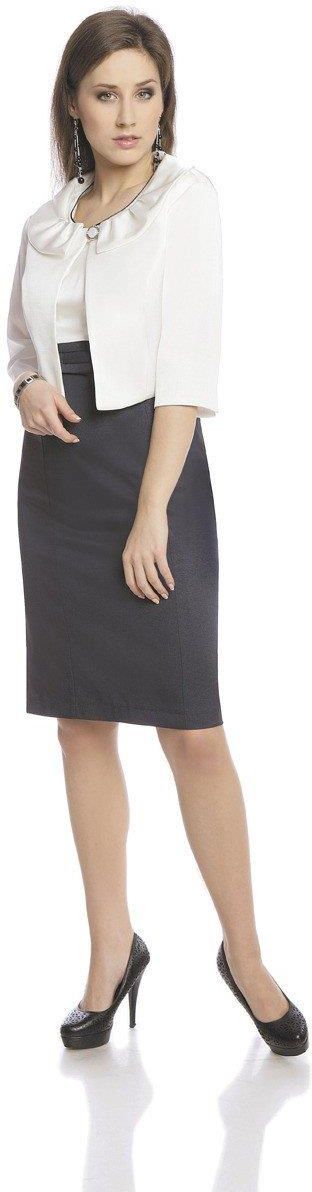 Fason: krótki Dekolt przód: okrągły, kołnierz fantazyjny Zapięcie: guzik Rękaw: 3/4 Materiał: tkanina - ryps, podszewka