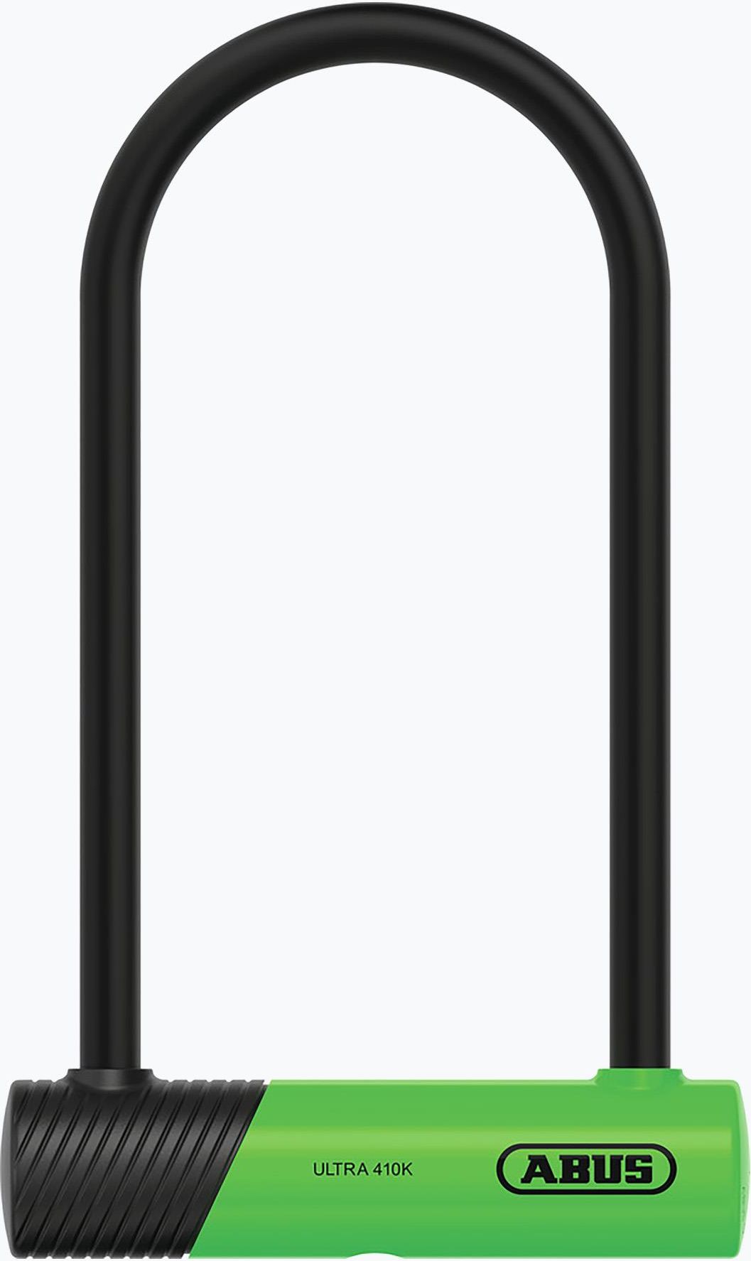 ABUS Zapięcie pałąkowe 410K Ultra do rowerów i skuterów elektrycznych – poręczne i wytrzymałe zapięcie rowerowe z praktycznym uchwytem do transportu na rowerze – akcesoria rowerowe – wariant 150HB180, zielony + Cobra 10/120 Silna ochrona przed kradzieżą: okrągły pałąk o grubości 12 mm ze specjalnie hartowanej stali zapewnia niezawodne bezpieczeństwo Wysokiej jakości cylinder: zapewnia wysoką ochronę przed manipulacjami, takimi jak blokada Picking Praktyczny uchwyt na zamek: łatwy w montażu uchwyt do transportu zamka pałąkowego bez grzechotania Poręczna konstrukcja: osłona zamka jest z jednej strony w kolorze czarnym i rowkowana, dzięki czemu kompaktowe zapięcie rowerowe dobrze leży w dłoni