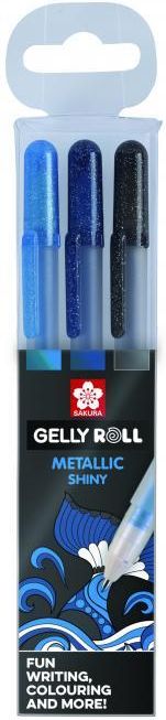 Pisaki żelowe Gelly Roll Metallic 3 szt - Ocean Gelly Roll marki Sakura serii metallic, charakteryzuje się błyszczącymi kolorami. Tusz na bazie wody, który po wyschnięciu nie rozmazuje się i jest wodoodporny. Specjalna technologia zastosowana w tuszu zapewnia płynne pisanie bez docisku, umożliwia tworzenie równych linii podczas pracy oraz zapewnia stały przepływ atramentu. Idealne do stosowania na papierze białym, kolorowym i czarnym. Zestaw zawiera kolory : Blue (536) Blue Black (543) Black (549)