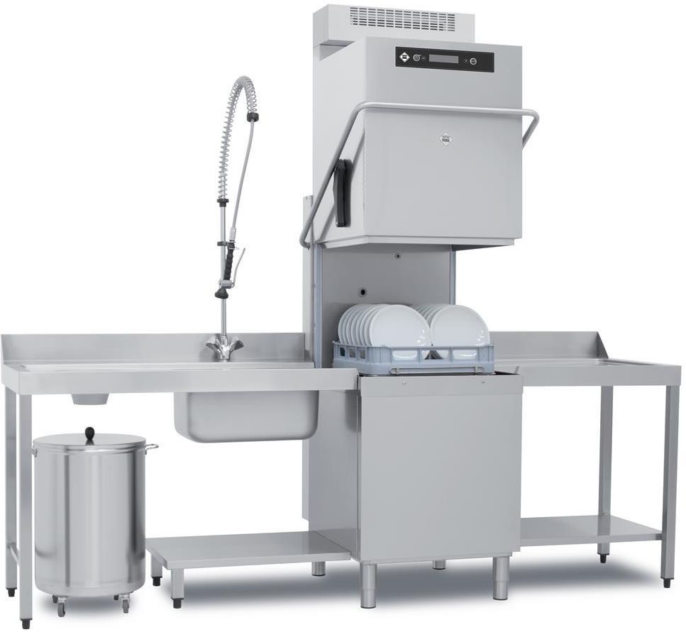 Wydajność: 60/40/20 koszy/h; 3 programy standardowe (cykle: 60", 90", 180") + 9 programów specjalnych; wymiary kosza: 500 x 500 mm ; wysokość otworu drzwi - 465 mm; maksymalna wysokość szklanki - 430 mm, talerza - 440 mm; dwupłaszczowa obudowa; zużycie wody: 2,2 l/cykl; bojler atmosferyczny z pompą …