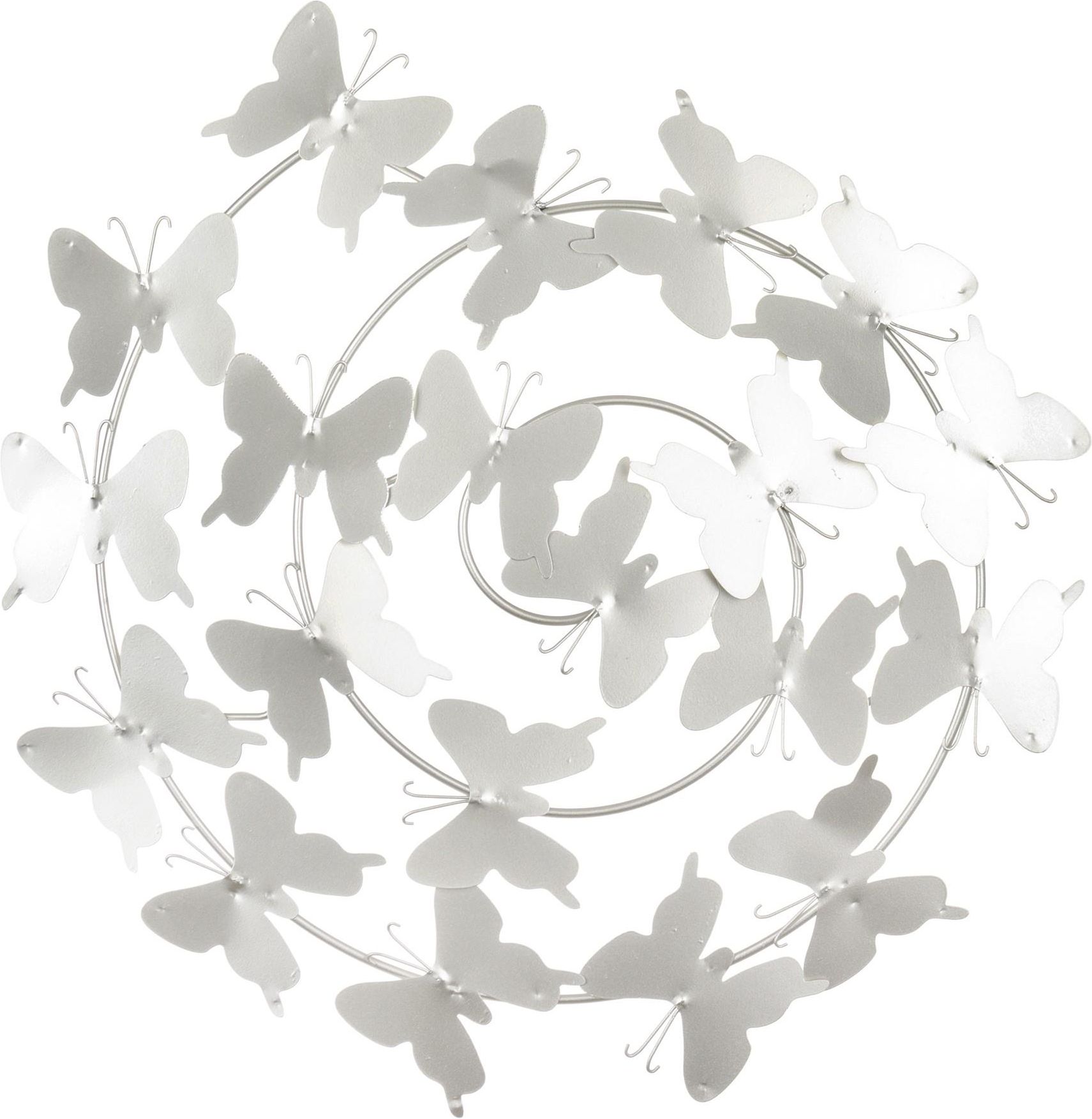 Dekoracja Ścienna Dekoracje metalowe będące produktami z metaloplastyki to nie tylko elementy ozdobne, ale również funkcjonalne detale wyposażenia do każdego wnętrza w stylu klasycznym, rustykalnym, czy nowoczesnym. Stylowe wykonanie dekoracji z metalu oraz rozmaitość ich wzorów i fasonów sprawia, że świetnie się one sprawdzą w dowolnym pomieszczeniu bez względu na ich przeznaczenie. Zapraszam do zakupu stylowej dekoracji ściennej w kształcie motyli. Będzie oryginalną ozdobą każdego pomieszczenia, w którym się znajdzie. Dekoracja wykonana z metalu w srebrnym kolorze. Opis - rozmiar: 56 x 52 x 2cm (wys. x szer. x gł.) - kolor: srebrny - produkt nowy, stylizowany, postarzany - montaż: nie wymaga, dekoracja dostarczana w całości - posiada uchwyty do zamocowania - materiał wykonania: metal - wysyłka w paczce Kolekcja dekoracji w różnych odcieniach i kształtach to idealny wybór dla miłośników elegancji i designu z najwyższej półki. Różnorodność kolekcji pozwala na łączenie ze sobą elementów na wiele sposobów oraz nadanie wnętrzom indywidualnego charakteru. Zapraszamy na pozostałe aukcje