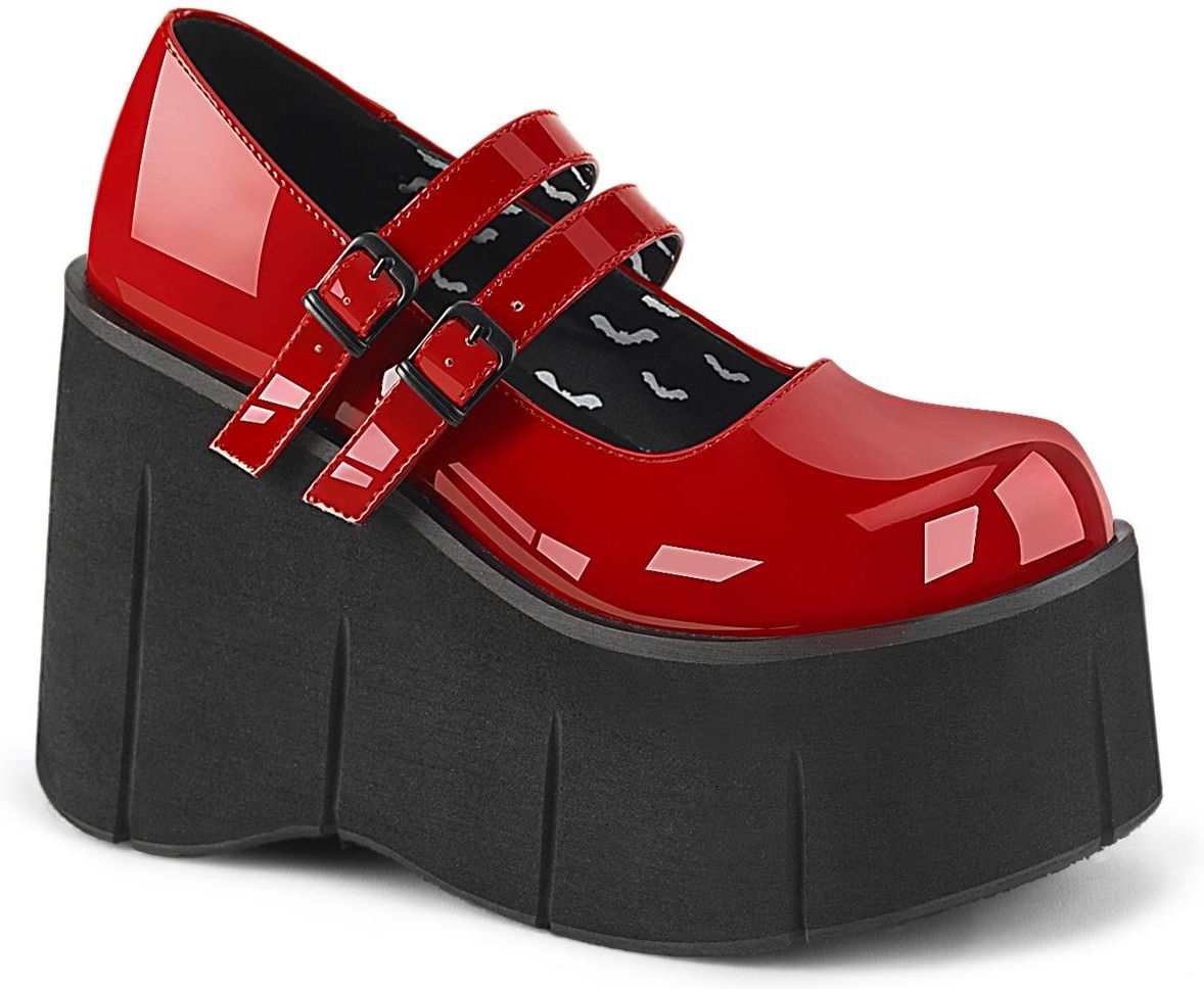 KERA-08 to wyjątkowy model obuwia alternatywnego. Łączy w sobie gotycki, zbuntowany look i urocze buciki w stylu Mary Jane. Buty zostały wyprodukowane ze skóry ekologicznej najwyższej klasy. Dzięki temu obuwie jest wygodne, a przy tym niezwykle wytrzymałe. 11.4 centymetrowe platformy optycznie wysmuklają sylwetkę, nadając jej lekkości. Usztywniany zapiętek oraz podeszwa z bieżnikiem zapewniają komfort i stabilność w czasie chodzenia i innych aktywności. Dwa regulowane paski zapinane na sprzączki pozwalają na idealne dopasowanie butów do anatomicznego kształtu stopy. KERA-08 to wyjątkowe buty, które będą doskonale pasować do bardzo wielu różnych stylizacji. Zarówno tych alternatywnych, jak i nieco bardziej alternatywnych. Ten model obuwia przypadnie do gustu osobom, które cenią klasyczne wzornictwo ze szczyptą punkowego buntu. W tych wyjątkowych butach każdy może poczuć się jak zbuntowana diva.Buty KERA-08 dostępne są w szerokiej gamie rozmiarów, od 35 do 42.
