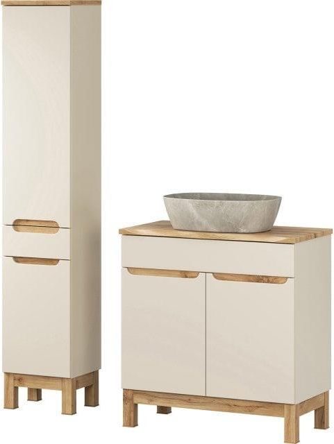 Comad Zestaw Mebli Bali Cashmere Szafka Z Blatem Nature Wotan 80Cm Umywalka Anna Słupek 35Cm (SETBACBNATWOTAN80CMUNANNAHC) Łomianki