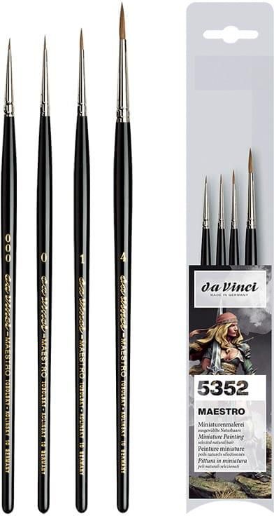 Da Vinci Pędzle Naturalne Do Figurek I Miniatur Maestro Tobolsky Kolinsky Zestaw 5352 4szt. Okrągłe Łomianki