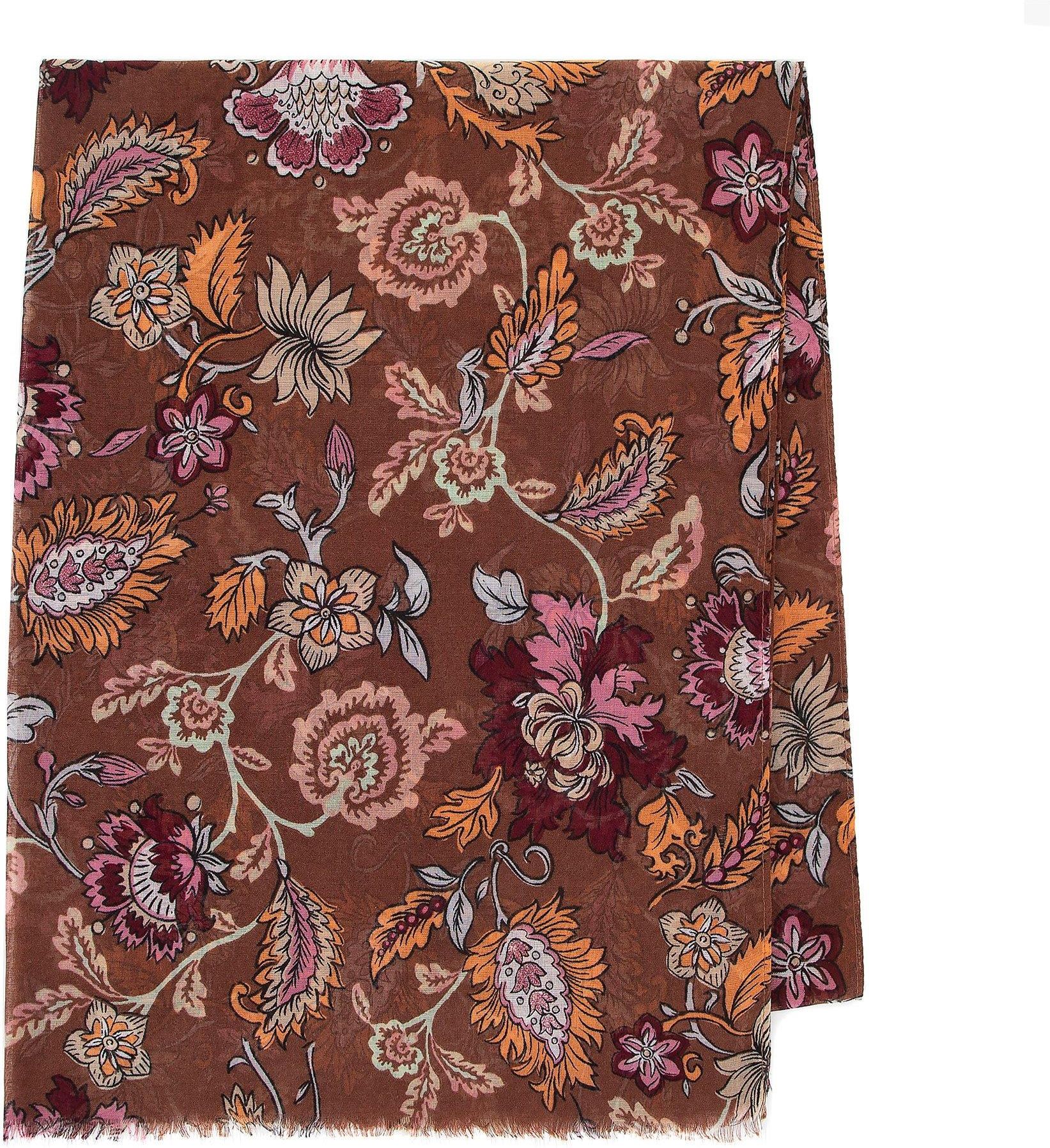 Damski szal w kwiatowy wzór brązowo - pomarańczowy Łomianki