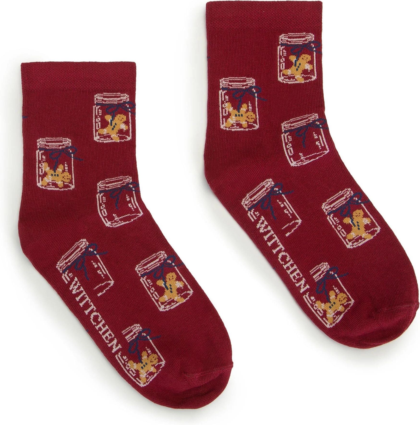 Skarpetki damskie we wzór w pierniki. Zabawne skarpetki z przyjemnej w dotyku dzianiny umilą Ci dzień. Wzór w piernikowe ciastka pokrywa całą skarpetę i pasuje do zimowych, świątecznych outfitów. Jednak dzięki uniwersalnym kolorom możesz je również nosić cały rok. Od spodu stopy widnieje logo WITTCHEN. Damskie skarpetki w pierniczki to świetny pomysł na prezent dla każdej kobiety.Nasza rada: skarpetki w zabawny wzór to świetny dodatek do casualowych botków na płaskim obcasie. 78% bawełna, 14% poliamid, 4% polipropylen, 2% elastodien, 2% elastan; wyprodukowane w Polsce; sięgają nad kostkę; pranie w pralce do 40 st. C.