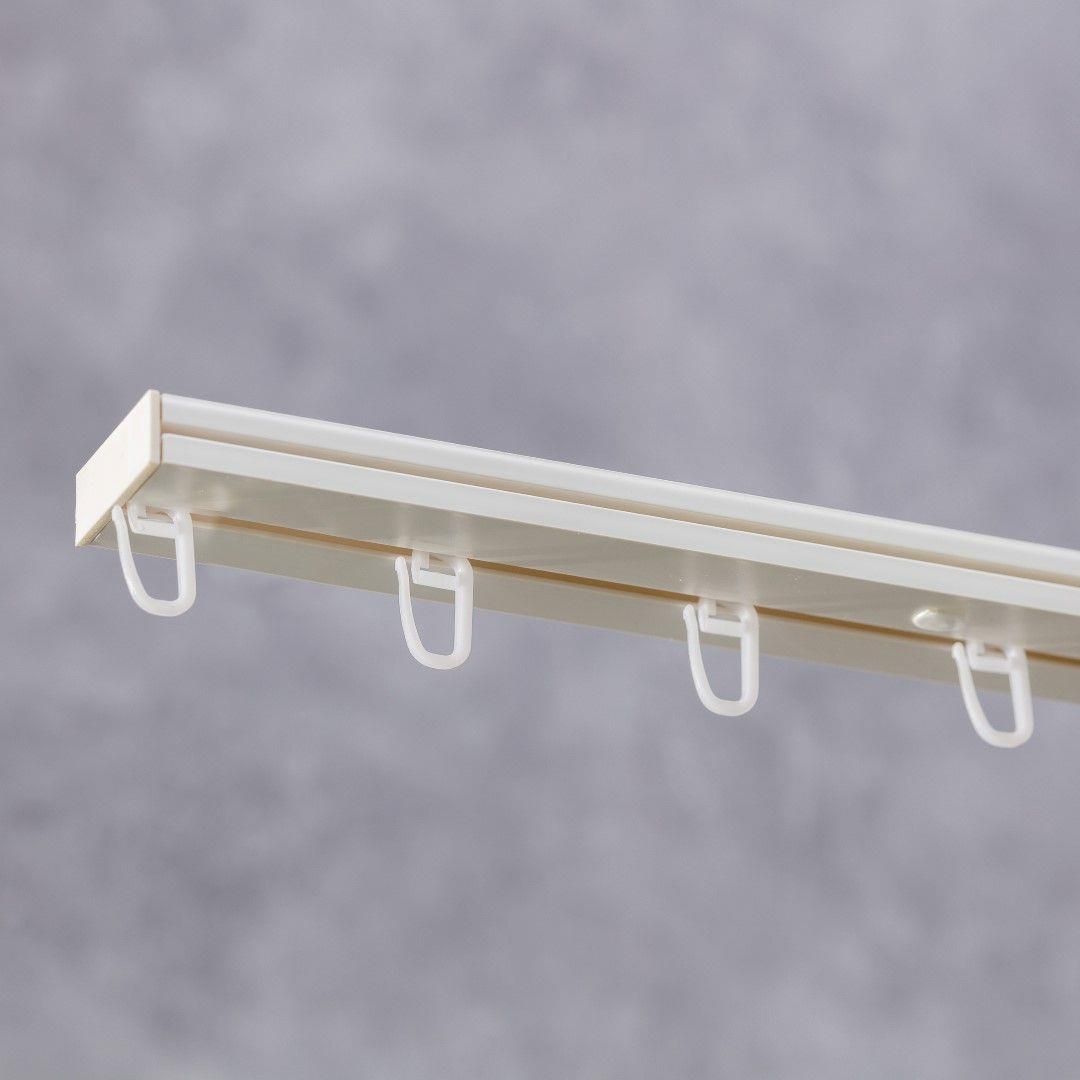 Kompletna szyna sufitowa pojedyncza 180cm. Stanowi alternatywę dla tradycyjnych karniszy, szczególnie polecana tam gdzie odległość od okna do sufitu nie pozwala zamontować karnisza. W zestawie nie występuje blokada do firan/ zasłon. Na życzenie klienta bezpłatnie wykonujemy otwór umożliwiający założenie blokady- w tym celu prosimy o kontakt z biurem obsługi klienta. (Uwaga! Po wykonaniu tej usługi produkt nie podlega zwrotowi).Komplet zawiera: szyna pojedyncza prosta o wym. 180cm - 1 szt. dekiel zakończeniowy - 2 szt. zaślepka - 7szt. agrafki - 26 szt. Montaż za pomocą wkrętów (brak w zestawie). Szyny można łączyć ze sobą za pomocą specjalnego łącznika do szyny. Wymiar: dł. 180cm, gł. 3,7cm, wys. 1,3cm. Materiał: tworzywo PCV. Kolor: biało-szary.