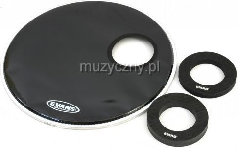 20" EMAD RESO BLK Rezonansowy naciąg o grubości 0,1778 mm ze stałym, wewnętrznym pierścieniem. EMAD Resonant cechuje się dwoma łatwo wymiennymi gąbkowymi pierścieniami, które tłumią harmoniczne wokół krawędzi 5” otworu wentylacyjnego, skupiając wysokość tonu oraz wzmacniając atak. Otwór jest położony tak, by łatwo można było umieścić w nim mikrofon.