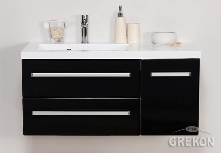 Szafka łazienkowa wisząca z umywalką o szerokosci 90 cm. Zestaw z dolomitową umywalką - meble łazienkowe wykonane są w kolorze czarnym seria Fokus C Gante.