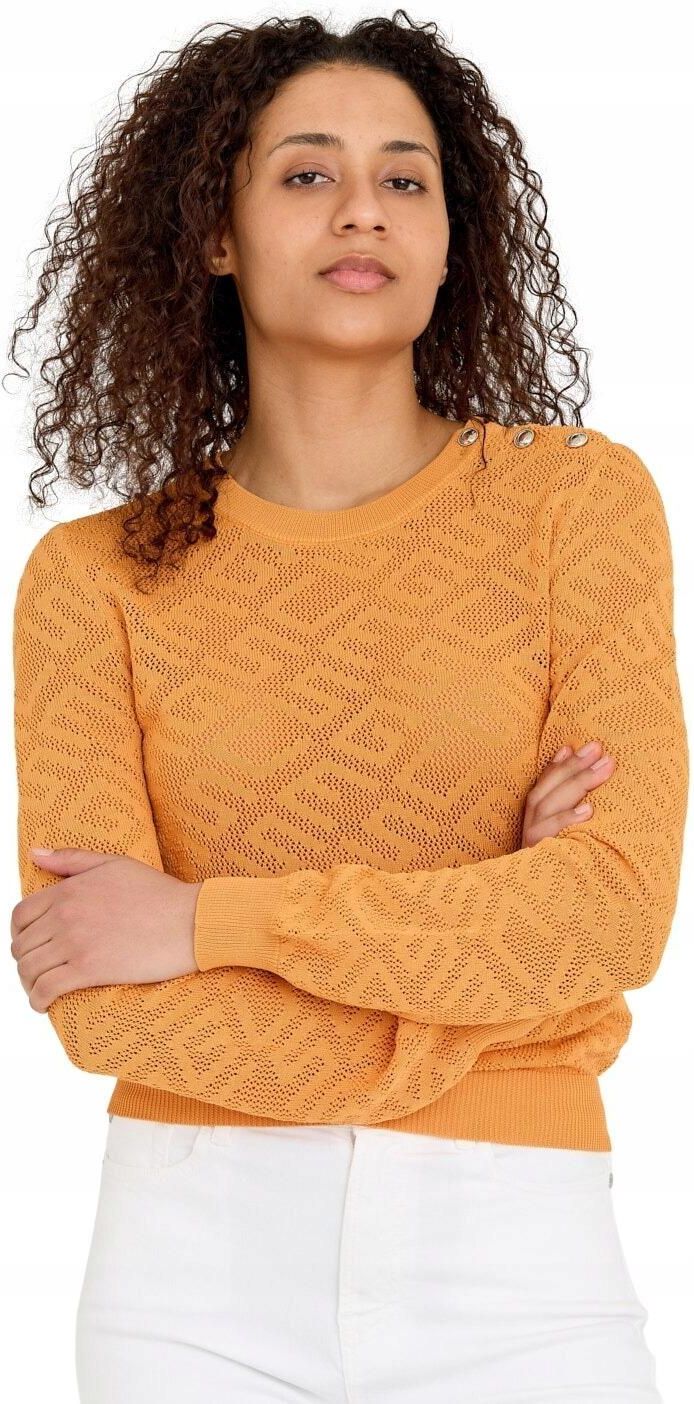 GUESS SWETER Pomarańczowy sweterek dzianinowy w monogram Guess. Pranie ręczne, prasować w temp. do 110°C, nie suszyć w suszarce, nie wybielać, nie wykręcać. ROZMIAR I DOPASOWANIE: Wymiary modelki: wzrost: 178 cm biust: 85 cm talia: 64 cm biodra: 91 cm Modelka ma na sobie produkt w rozmiarze S. …