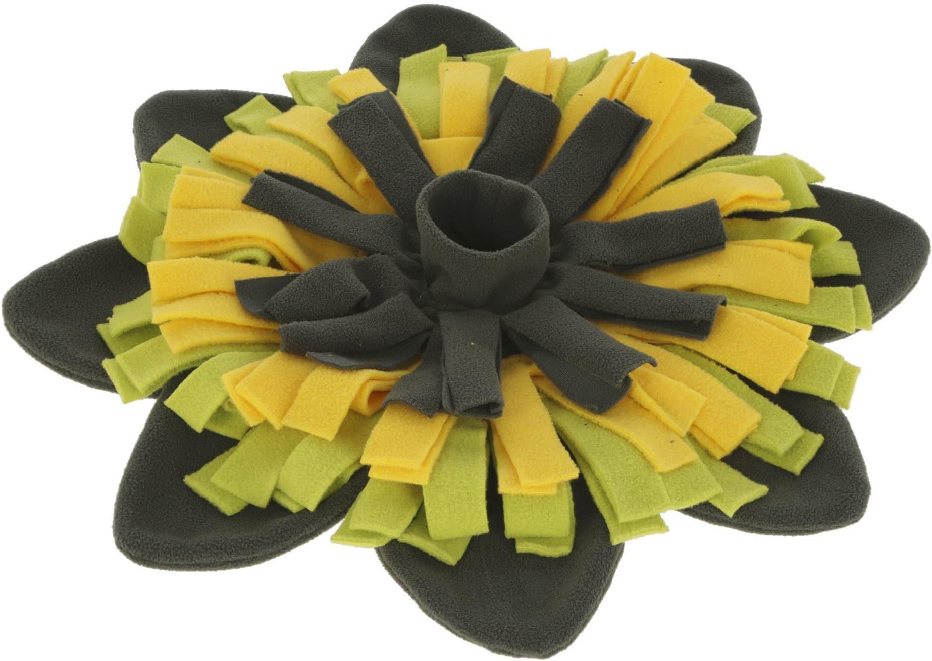 Mata węchowa dla psów Sunflower, Ø 40 cm, Kerbl okrągła mata do długich gier w poszukiwaniu i węszeniu dla psów i kotów zapach smakołyków ukrytych pomiędzy paskami aktywizuje zwierzę do zabawy pomaga odzwyczaić się od pospiesznego jedzenia i służy do nagradzani zwierząt jednocześnie stymulując ich …