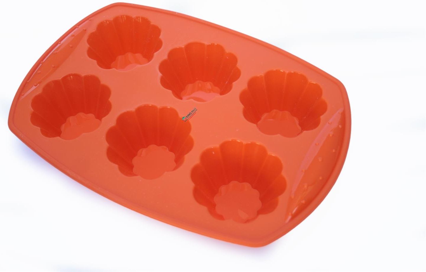 Silikonowa forma do pieczenia babeczek. Miejsce na 6 szt, kształt wytłoczeń - kwiatek. Wykonana z najwyższej jakości silikonu odpornego na temperaturę w zakresie od -40 do 260*C. Miękki silikon ułatwia wyjmowanie wypieku z formy. Można używać w zamrażarkach, kuchenkach mikrofalowych, piekarnikach. Nieprzywieralna powierzchnia. Nie wchłania zapachów ani płynów. Łatwa do mycia, można myć w zmywarce. Rozmiar: 30 x 20,7 x 3,3cm. Dostępna w wielu odblaskowych kolorach, które dodadzą energii w kuchni. Dostępne kolory: zielony, pomarańczowy, niebieski, różowy. sprzedaż na całe opakowania mix kolorów
