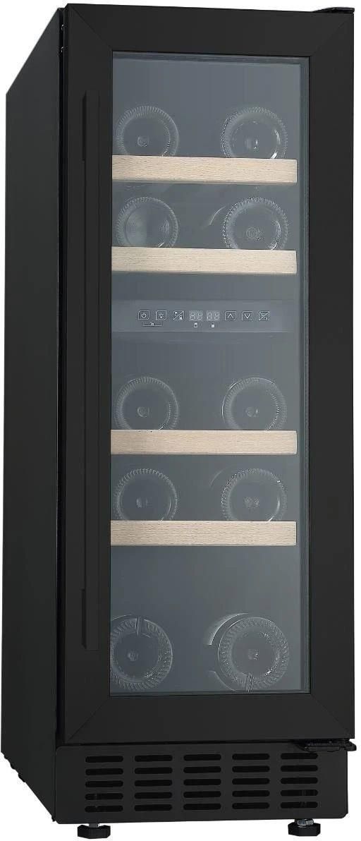 KCW1702B Winiarka Szafka na wino do zabudowy z 2 niezależnymi strefami chłodzenia Pojemność 17 butelek Zakres temperatury: 5-22°C Elektroniczna regulacja temperatury z wyświetlaczem Szklane drzwi z czarną ramą i czarną klamką, szkło z filtrem UV Białe oświetlenie LED z włącznikiem Automatyczne odszranianie, aktywny system wentylacji 4 szt. wysuwanych do połowy drewnianych półek Poziom hałasu: 42dB Zużycie energii: 138 kWh/rok Wysokość regulowana (od 82,5 cm do 87 cm) Klasa energetyczna: G Szer. 29.5 cm Wys. 82.5 cm Głęb. 57 cm