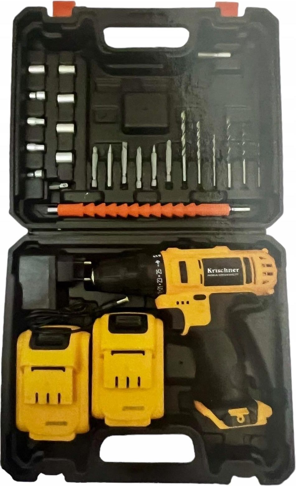 Wiertarka Akumulatorowa Krischner KR-9952 Wiertarka akumulatorowa Krischner KR-9952 to profesjonalne narzędzie, które spełni oczekiwania nawet najbardziej wymagających użytkowników. Wysoka jakość wykonania i zaawansowana technologia gwarantują niezawodność i długotrwałe użytkowanie. Cechy produktu Marka: Krischner Model: KR-9952 Zasilanie: Akumulatorowe, 48V Baterie w zestawie: 2 sztuki (dodatkowa bateria w zestawie) Moc: Wysoka wydajność dzięki bezszczotkowemu silnikowi Regulacja prędkości: Zmiana prędkości biegu wstecznego umożliwia kontrolę urządzenia podczas wiercenia i jego ustawioność Oświetlenie: Światło LED do pracy w słabo oświetlonych miejscach Wielkość uchwytu wiertarskiego: 10 mm Konstrukcja: Miekkie i wygodne uchwyty oraz ergonomiczna konstrukcja dla lepszej kontroli i komfortu pracy Zestaw: Wiertarka, 2 akumulatory, ładowarka, zestaw wierteł i bitów w praktycznej walizce Profesjonalna wiertarka akumulatorowa Krischner KR-9952 to doskonały wybór dla każdego majsterkowicza oraz profesjonalisty. Dzięki mocnemu akumulatorowi 48V i bezszczotkowemu silnikowi, urządzenie oferuje wydajność i niezawodność, które sprostają nawet najtrudniejszym zadaniom. Dodatkowa bateria w zestawie pozwala na ciągłość pracy bez przerw na ładowanie, a wbudowane oświetlenie LED umożliwia pracę w trudno dostępnych i słabo oświetlonych miejscach. Ergonomiczna konstrukcja i miękkie uchwyty zapewniają komfort i kontrolę podczas użytkowania, a solidny zestaw wierteł i bitów w praktycznej walizce sprawia, że wiertarka jest gotowa do pracy od razu po rozpakowaniu. Nie czekaj, zamów już dziś i ciesz się najwyższą jakością narzędzi Krischner!