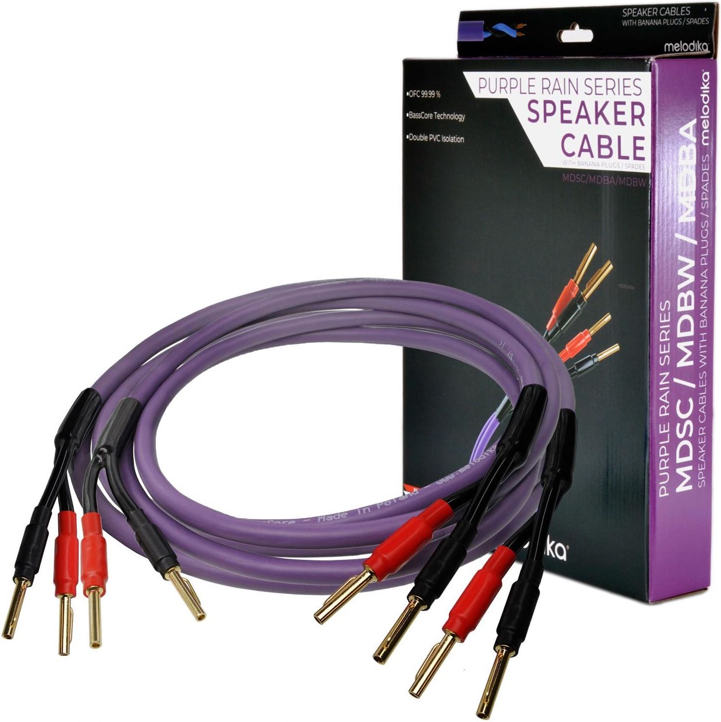Komplet dwóch konfekcjonowanych kabli głośnikowych OFC 4N 2x2,5mm2 Melodika Purple Rain MDSC2510 - 1 metr Komplet dwóch wysokiej jakości kabli głośnikowych konfekcjonowanych wtykami bananowymi, przeznaczonych do podłączania kolumn głośnikowych w zestawach audio Hi-Fi. Marka: Melodika Seria: Purple …