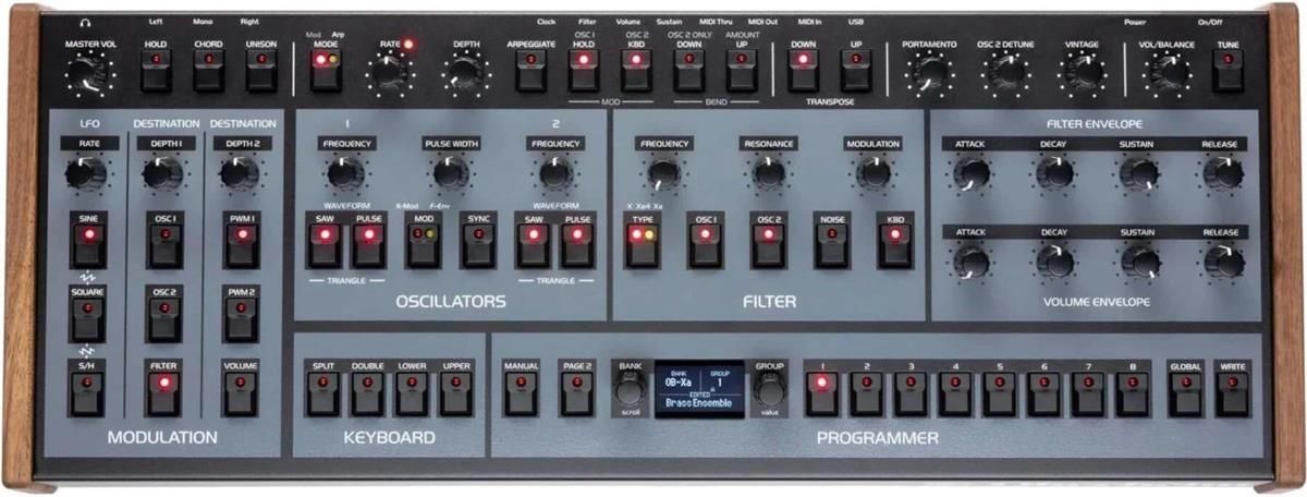 Oberheim OB-X8 Desktop Oberheim OB-X8 Desktop Module Oberheim X8 został powszechnie uznany za wprowadzenie klasycznego brzmienia Oberheima do zupełnie nowej generacji. Presety OB-X8 Desktop, funkcje syntezy i dźwięk elementy sterujące edycją są dostępne w kompaktowej obudowie pasującej do kreatywnej przestrzeni mniejszego studio. Wersja OB-X8 Desktop Module oferuje wszystkie funkcjonalności co duzy brat z pominięciem 61 klawiatury fatar oraz koł Pitch i Mod ale pozwala doświadczać wszystkich dźwiękowych eksploracji Oberheim OB-X , OB-Xa, OB-8. Moduł oferuje identyczny silnik dźwiękowy z analogową ścieżka sygnału z dyskretnymi VCO, VCA i filtrami. Używając intuicyjnego iterface'u uzyskasz natychmiastowy dostęp do praktycznie wszystkich parametró syntezatora, co pozwala na tworzenie własnych, unikalnych dźwięków w 8-głosowa czysto analogowa polifonia z sinusem, piłą, kwadratem, trójkątem i szumem Dwa dyskretne VCO OB-X/SEM-lineage na głos zapewniają klasyczny efekt punchy Oberheima Dyskretne VCF z linii SEM zapewniają autentyczne brzmienie i obecność w stylu OB-X Oryginalne filtry Curtis dodają pogrubiony znak OB-Xa/OB-8 Skrupulatnie modelowane odpowiedzi obwiedni pasują do każdego modelu OB: OB-X, Ob- Xa i OB-8 Funkcja bi-timbral umożliwia jednoczesne ustawienie dwóch resetów dla dzielenia i dublowania 4600 programów fabryczne, w tym pełny zestaw dźwięków fabrycznych dla OB-X, OB-SX, Ob-Xa i OB-8 Zintegrowany bezwentylatorowy zasilacz bez radiatora Drewniana obudowa z prawdziwego orzecha włoskiego Wyświetlacz OLED o wysokiej rozdzielczości umożliwia zarządzanie i i łatwy dostęp do zaawansowanych funkcji Klasyczne dźwignie Oberheim Pitch i Mod pozwalają na ekspresyjne bending, vibrato, i dostęp do funkcji arpeggiatora Dodatkowe tryby filtrów SEM dodają funkcje górnoprzepustowe, pasmowoprzepustowe i notch filtr OB-X Pokrętło Vintage umożliwia zmienną ilość voice-to-voice w celu emulowania zachowanie starych instrumentów Channel Aftertouch dodaje modulację w czasie rzeczywistym Ulepszony unisono umożliwia zmienne nakładanie głosów od 1-8 głosów Regulowana szerokość impulsu na oscylator umożliwia bogatsze i bardziej animowane barwy Programowalne panoramowanie na głos pozwala na szerszą obecność stereo Wyjścia L/R Stereo i Mono Wejścia pedału głośności, sustain, filtra i arpeggiatora Wejście zegara arpeggiatora MIDI In, Out, Thru USB