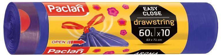 Worki na śmieci PACLAN Drawstring 136914 o pojemności 60 litrów, to worki zapachowe z taśmą dla łatwego zawiązania zapełnionego worka. Rolka zawiera 10 worków, a pojemność 60 litrów idealnie sprawdzi się w większych pojemnikach.