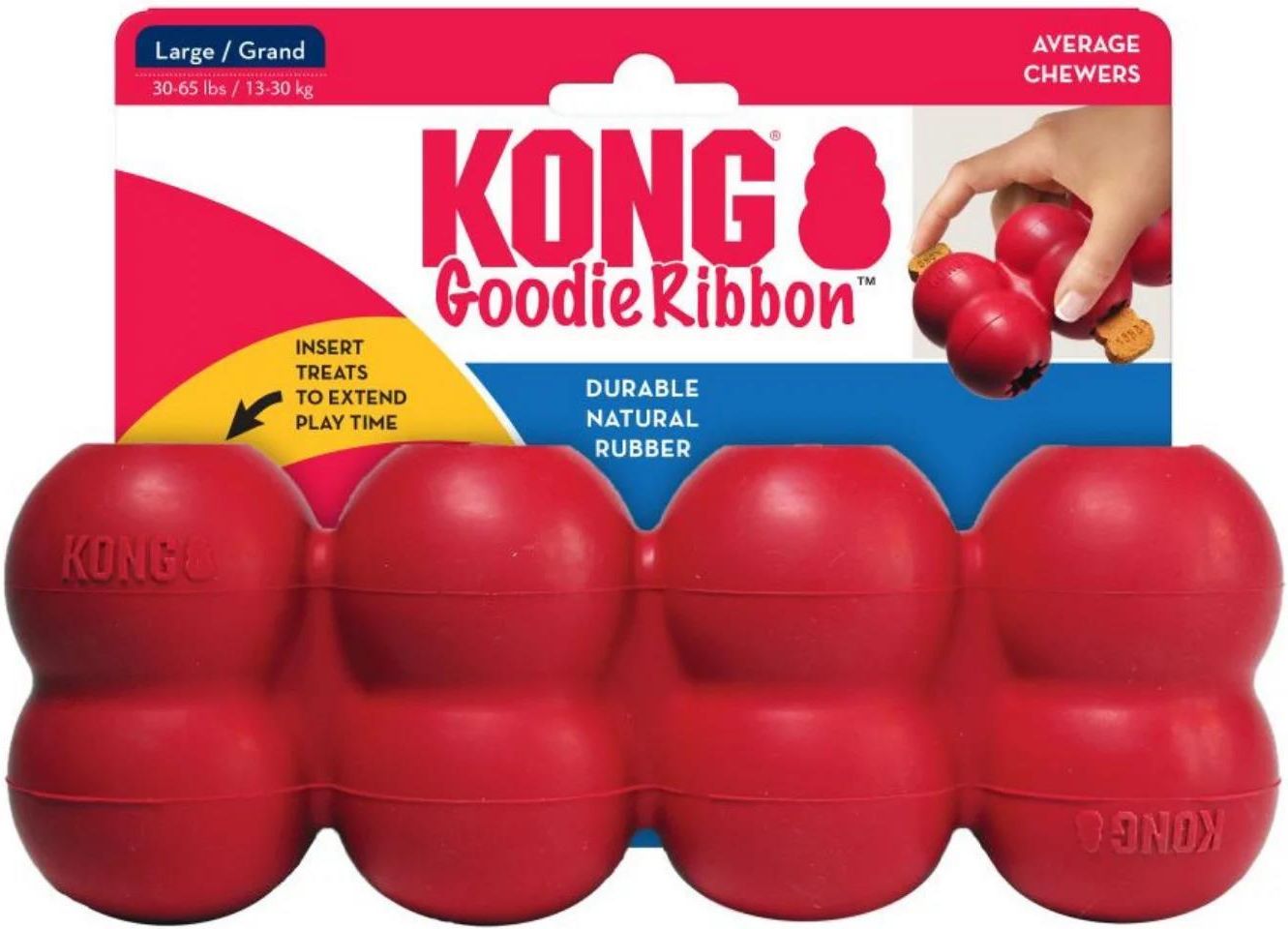 Zabawka dla psa KONG Goodie Ribbon Zabawka dla psa KONG Goodie Ribbon to ten trwały gryzak z aż 4 otworami do nadziewania przysmakami jest rekomendowany dla dorosłych psów o umiarkowanej intensywności żucia i będzie odpowiedni dla większości ras. Dzięki swojej budowie utrzyma zaangażowanie psa …