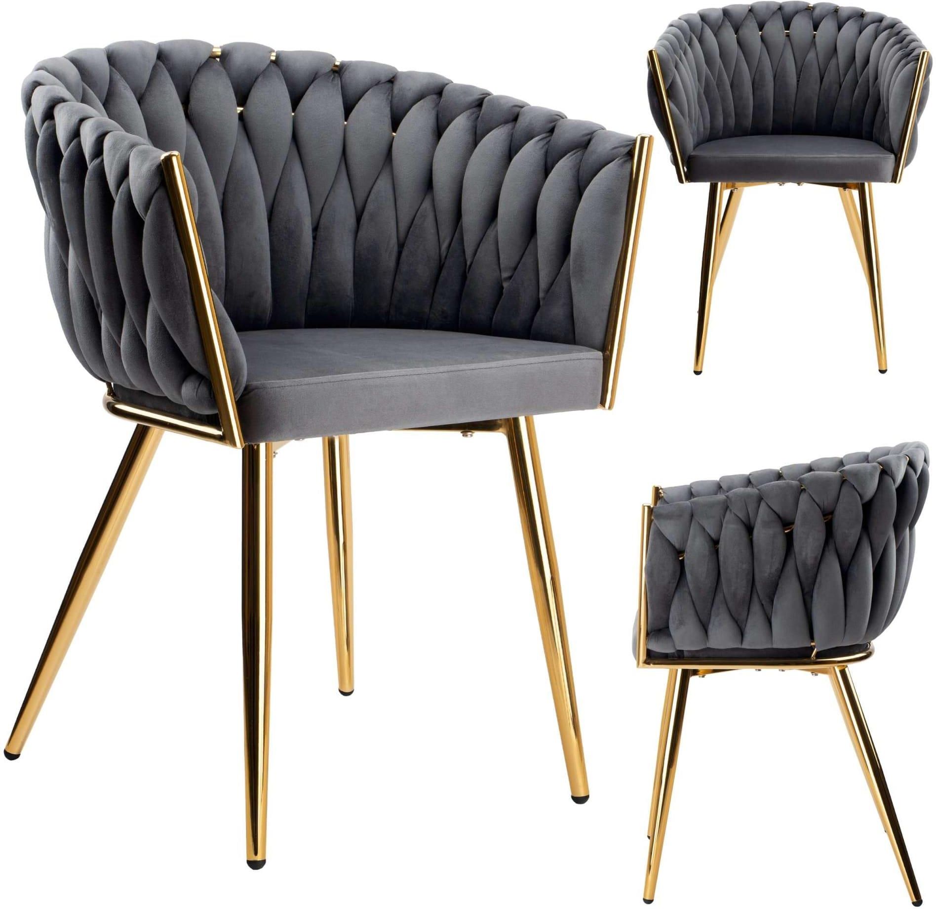 Krzesło Welurowe Plecione Cofton Gold Velvet Grafitowy Łomża