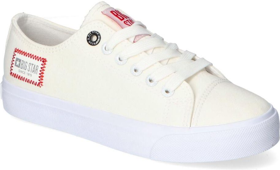 Modne trampki popularnej firmy Big Star:- cholewka wykonana została z wysokiej klasy materiału tekstylnego - wnętrze wykonane z wygodnego materiału tekstylnego- miękka materiałowa wkładka gwarantuje komfort chodzenia - podeszwa o grubości 1,5 cm zapewnia odpowiednią stabilizację - sznurowana cholewka zapewnia dopasowanie obuwia do tęgości stopy i ułatwia zakładanie - piękny biały kolor oraz modny fason przypadną do gustu każdej kobiecie!