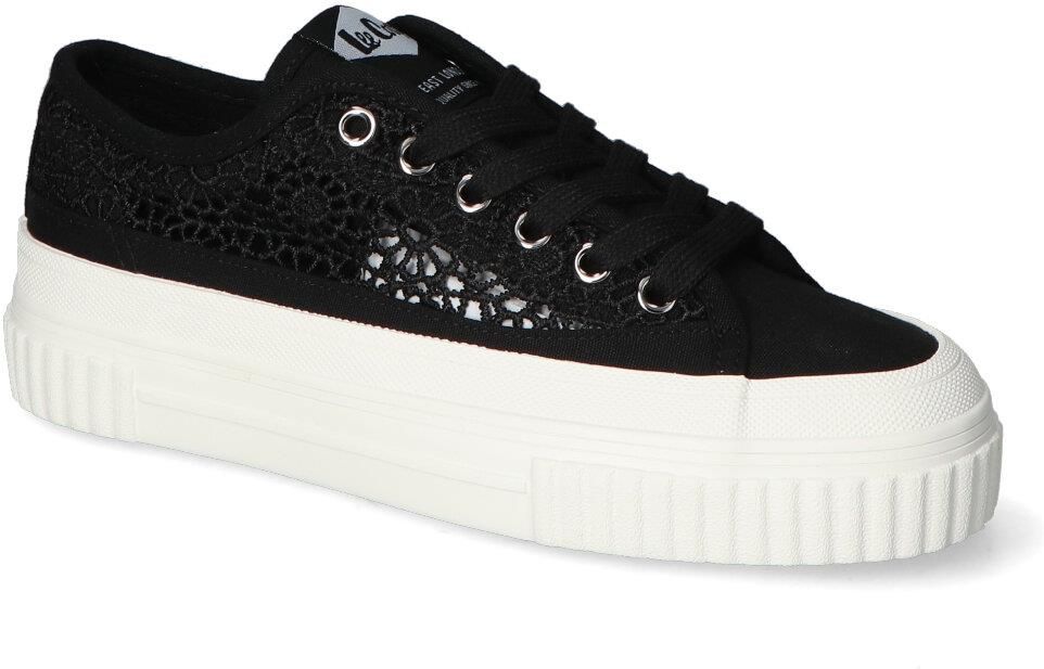 Modne trampki popularnej firmy Lee Cooper:- wykonane zostały z najlepszej jakości materiałów tekstylnych - wnętrze wykonane z wygodnego materiału dla zapewnienia wygody - wygodna, miękka materiałowa wkładka gwarantuje komfort- podeszwa o grubości 4 cm zapewnia odpowiednią stabilizację stopy - sznurowana cholewka zapewnia dopasowanie obuwia do tęgości stopy - czarny kolor oraz ażurowy wzór tworzą efekt, który zachwyci każdego!