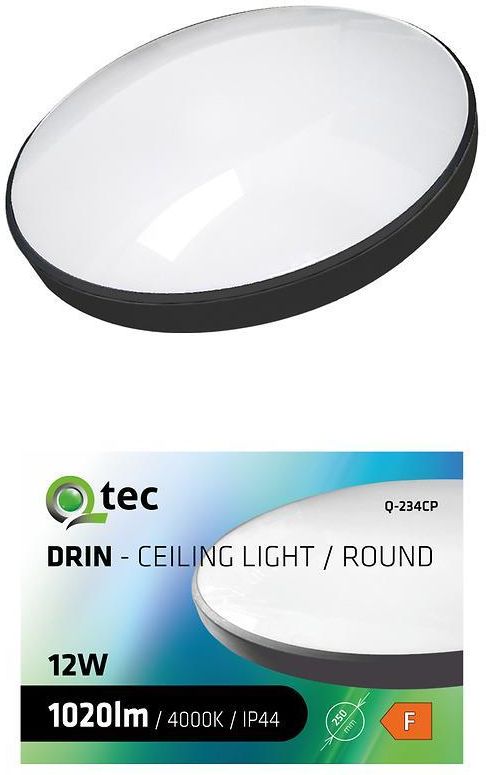 Plafon QTEC 12 W 4000 K w kolorze czarnym to kompaktowe i nowoczesne źródło światła LED o neutralnej barwie. Wykonany z tworzywa sztucznego, z zintegrowanym źródłem LED, zapewnia strumień świetlny 1020 lm przy mocy 12 W. Plafon nie jest przyciemnialny i nie zmienia kierunku światła. Zasilanie 230 V, klasa szczelności IP44, klasa ochronności II, średnica 25 cm, efektywność energetyczna F.