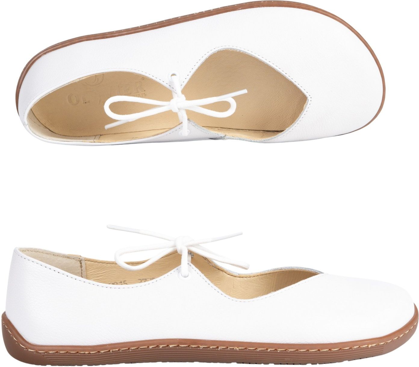Baleriny barefoot damskie skórzane Camille – cienki spód, zero drop, białe Łosice