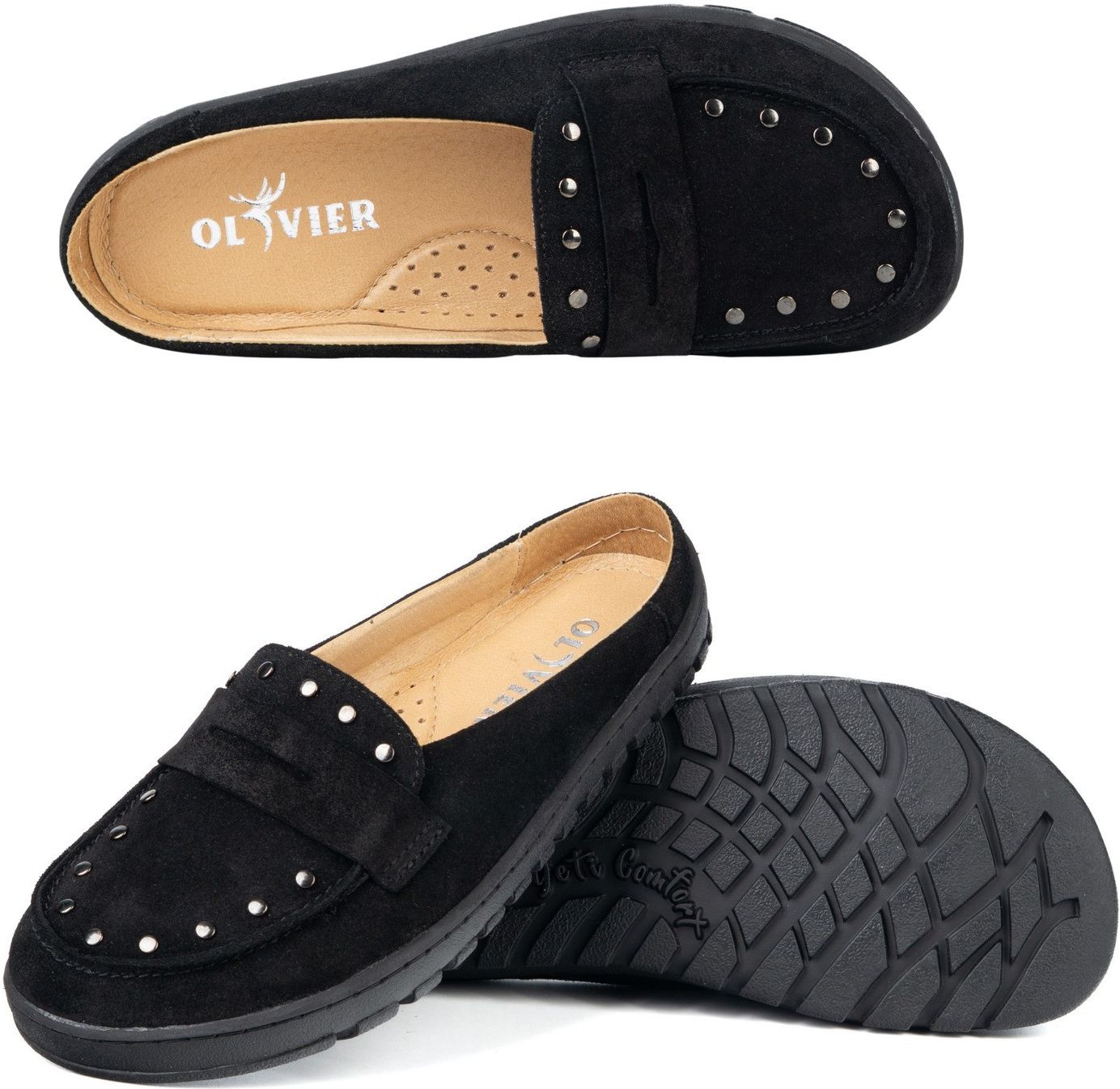 Barefoot Mule Studs – damskie skórzane mokasyny backless czarne Łosice