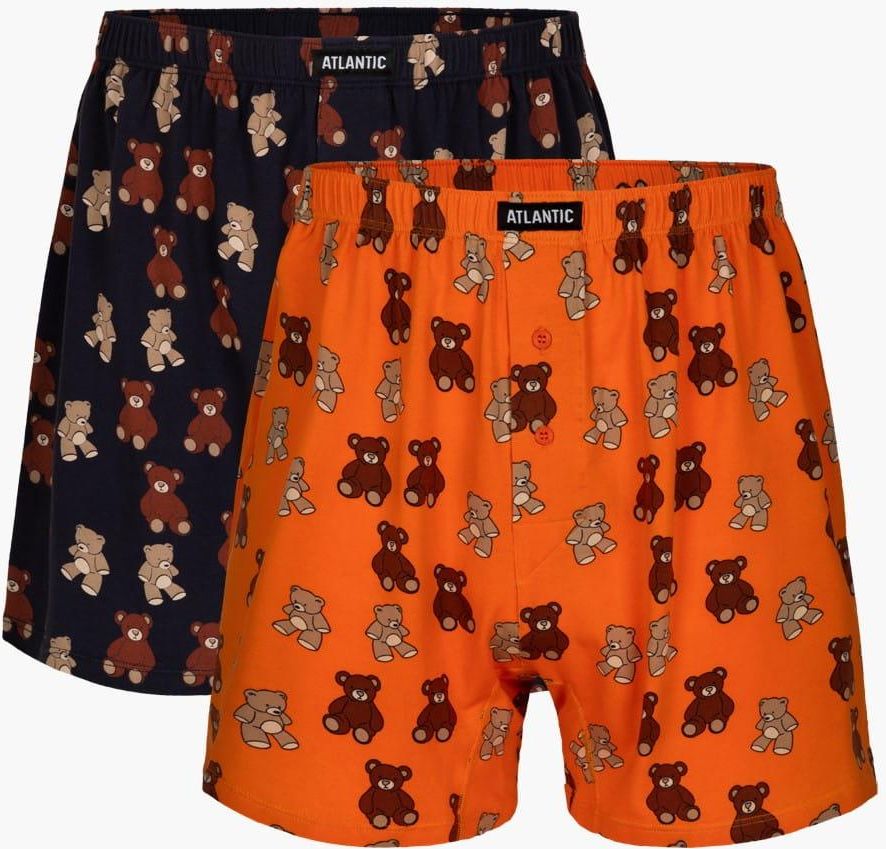 Męskie bokserki w misie producent Atlantic model 2MBX-044 granatowe i pomarańczowe.