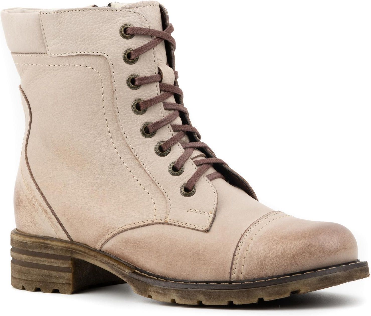 Botki skórzane damskie trzewiki ocieplane zimowe 226BB beżowe Łosice